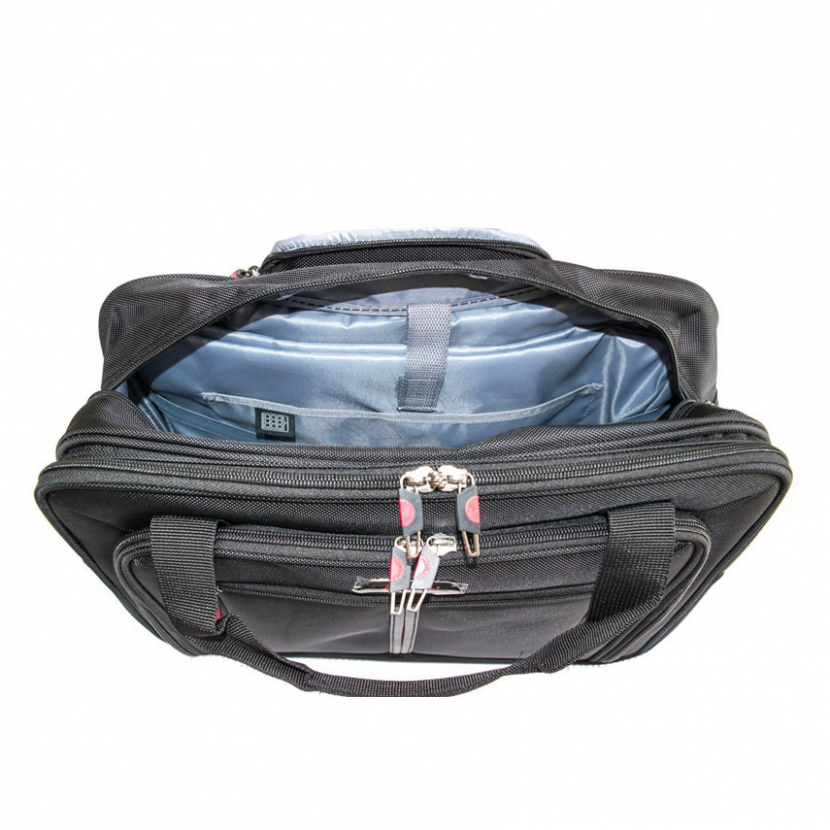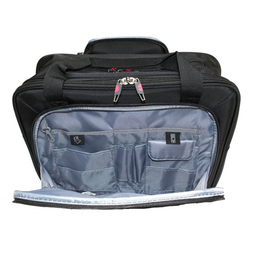 Na přední straně kufru je jedna kapsa, ve které je možno přenášet dokumenty o velikosti A4. Druhá kapsa s organizérem a kapsičkami na tužky, vizitky apod., na které je ještě jedna malá kapsička. V hlavním prostoru je extra polstrovaný prostor určený pro notebook.