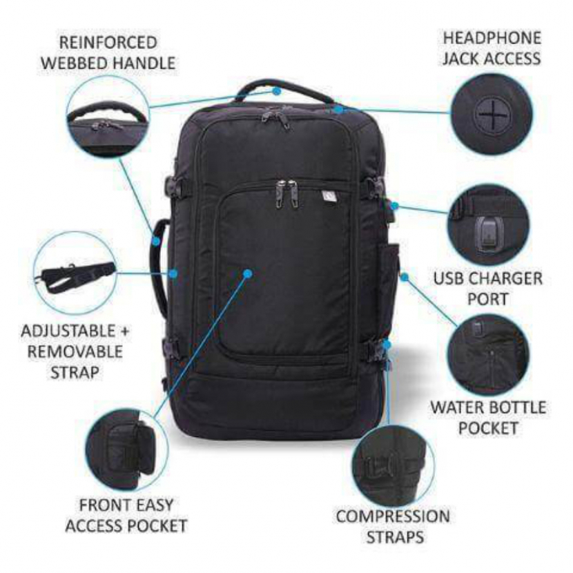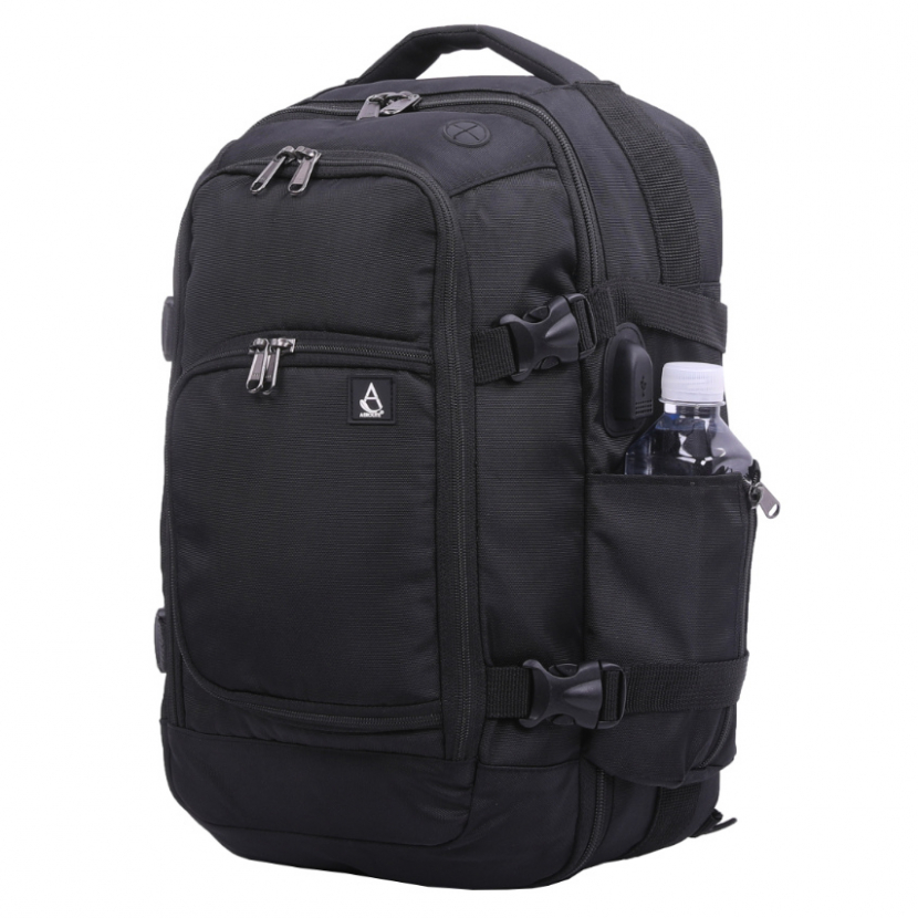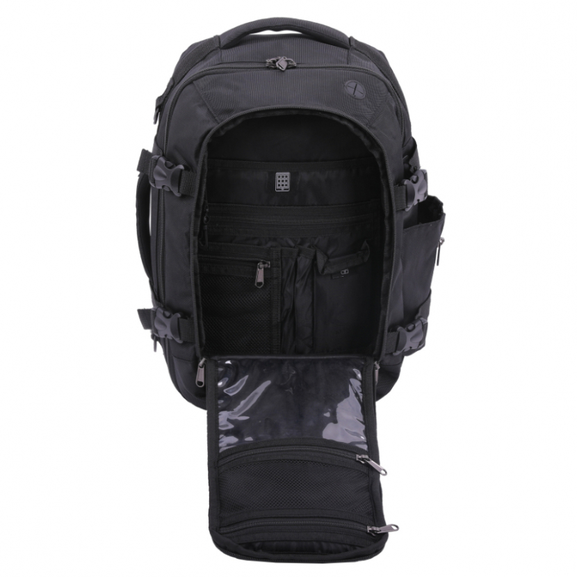 Prostorná hlavní kapsa je vybavena stahovacími pásy na oblečení a boty. Prostřední kapsa je pro vaši technologii – s prostorem na notebook (vhodné pro obrazovky do velikosti 15,6″) a menšími kapsami na příslušenství. Má také vodotěsnou kapsu na toaletní potřeby. Menší přední kapsa je ideální pro psací potřeby a menší věci. Navíc je na boku dokonce držák na láhev.