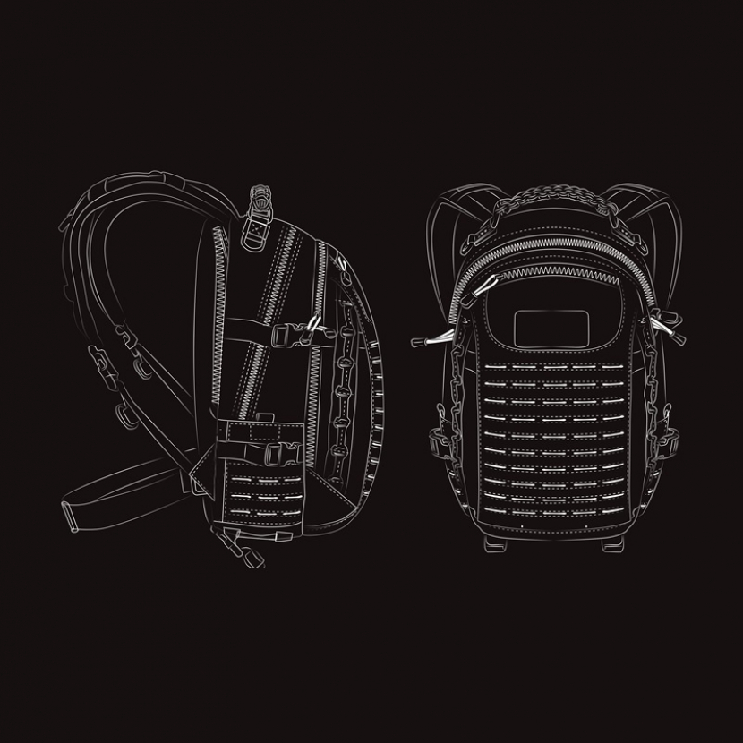 Batoh disponuje několika úložnými prostory, včetně hlavní komory s přihrádkou na hydratační vak a notebook (do velikosti 15,6″), organizérem v přední komoře a speciálními přihrádky na bocích pro láhve či termosky. Panel laserem vyřezávané PALS/MOLLE vazby na přední straně a bocích umožňuje připevnění dalších pouzder a vybavení.