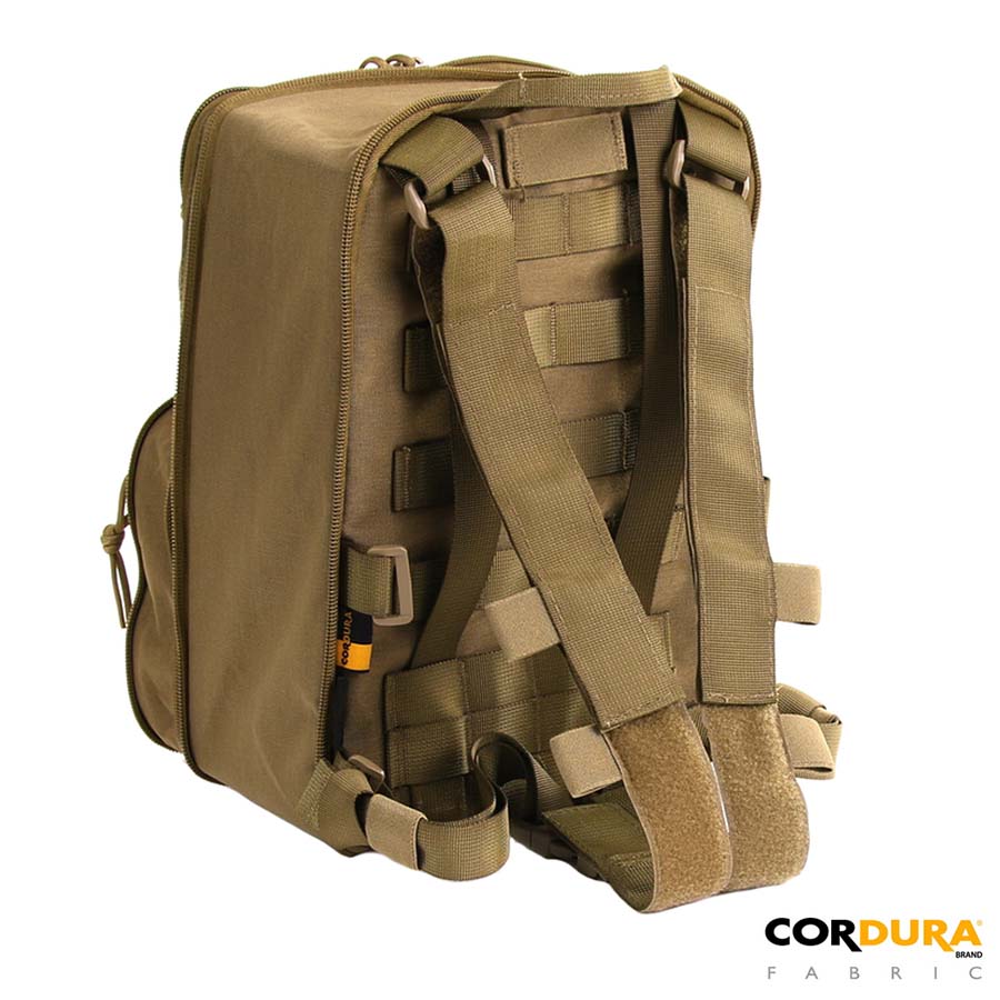 Změnou objemu však flexibilita batohu nekončí. Kromě samostatného nošení lze ramenní popruhy díky 25mm fastex sponám rozepnout a připojit k chest rigu typu D3CR nebo ekvivalentním. Nebo můžete popruhy zcela odepnout a batoh připojit systémem PALS/MOLLE k taktické vestě, nosiči plátů nebo většímu batohu.