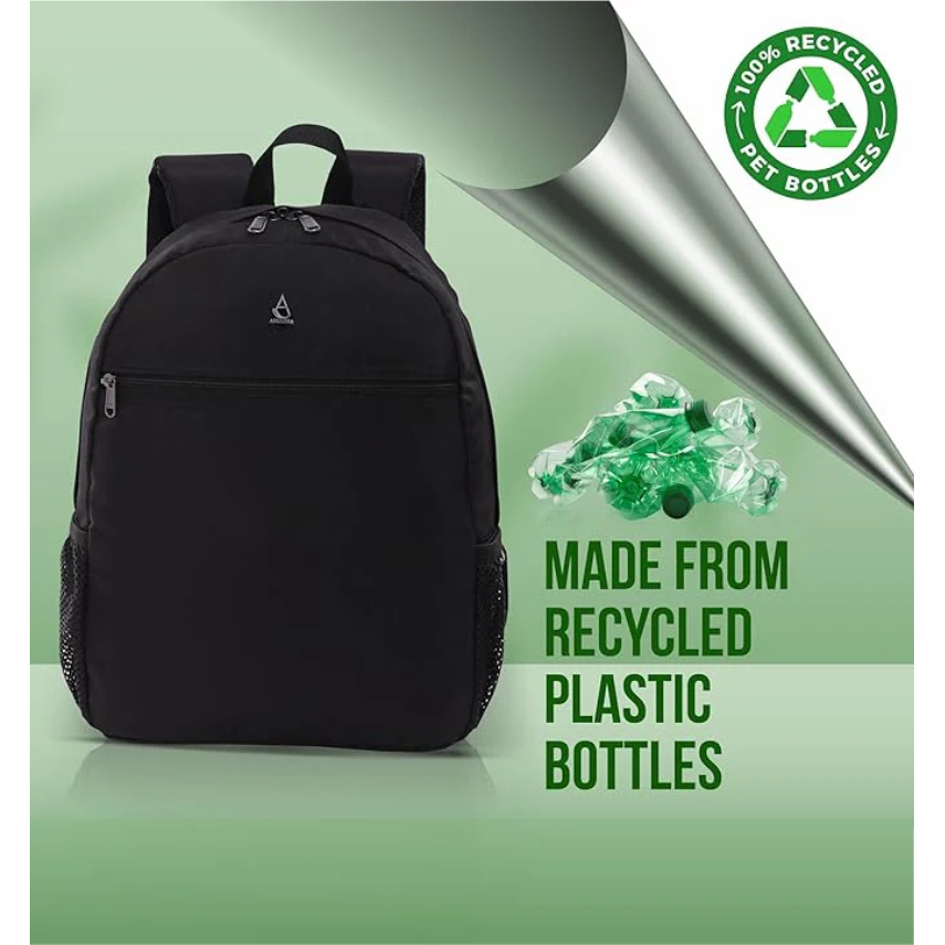 Pohodlné nastavitelné ramenní popruhy v kombinaci s polstrovanými zády zajišťují maximální pohodlí při nošení. Batoh je vybaven speciálním popruhem na zadní straně, díky němuž ho můžete připevnit přes výsuvné madlo kufru.vBatoh je trvale udržitelný, protože vnější materiál je vyroben z recyklovaných plastových lahví, což pomáhá životnímu prostředí a zároveň přeměňuje odpad na výrobky, ze kterých můžete mít dobrý pocit.