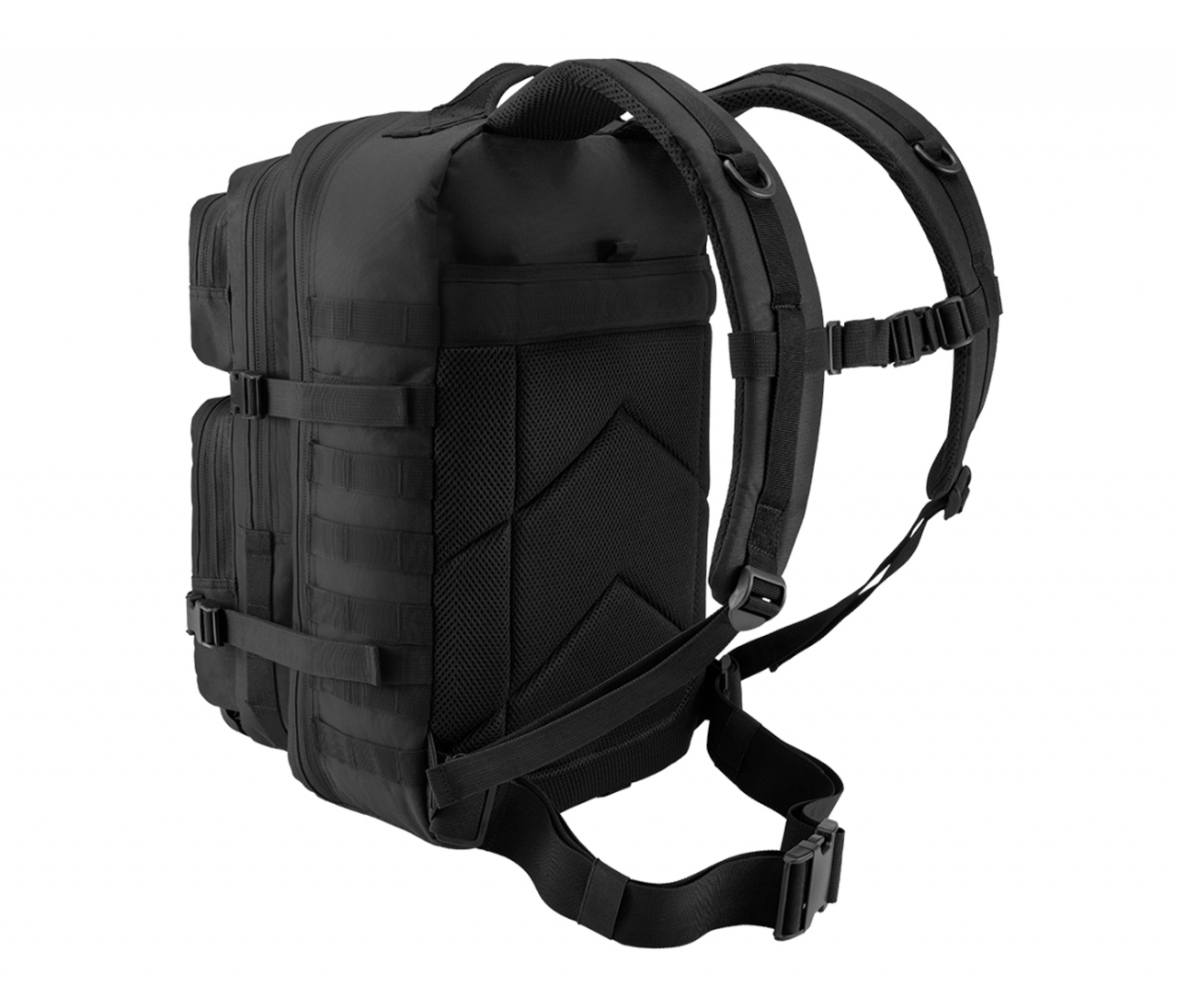 Batoh má polstrované a nastavitelné ramenní popruhy pro maximální komfort a kompresní popruhy po stranách. V přední straně batohu i po stranách je batoh osazený Molle systémem.