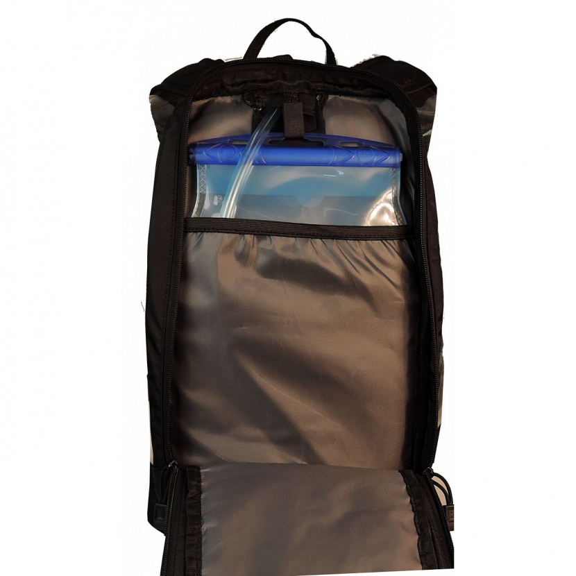 • hlavní úložná kapsa s dvojcestným zipem se dá otevřít po celé délce + oddělená část na vodní rezervoár 2l (poutka  pro zavěšení a hadičku jsou samozřejmostí)