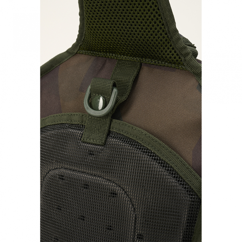 Polstrovaný, ergonomicky tvarovaný ramenní popruh šíře 7,5 cm umožňuje pohodlné nošení přes jedno rameno. Batoh má také polstrovaná záda, nastavitelný bederní pás s možností rychlého rozepnutí. Všechny zipy jsou dvoucestné.