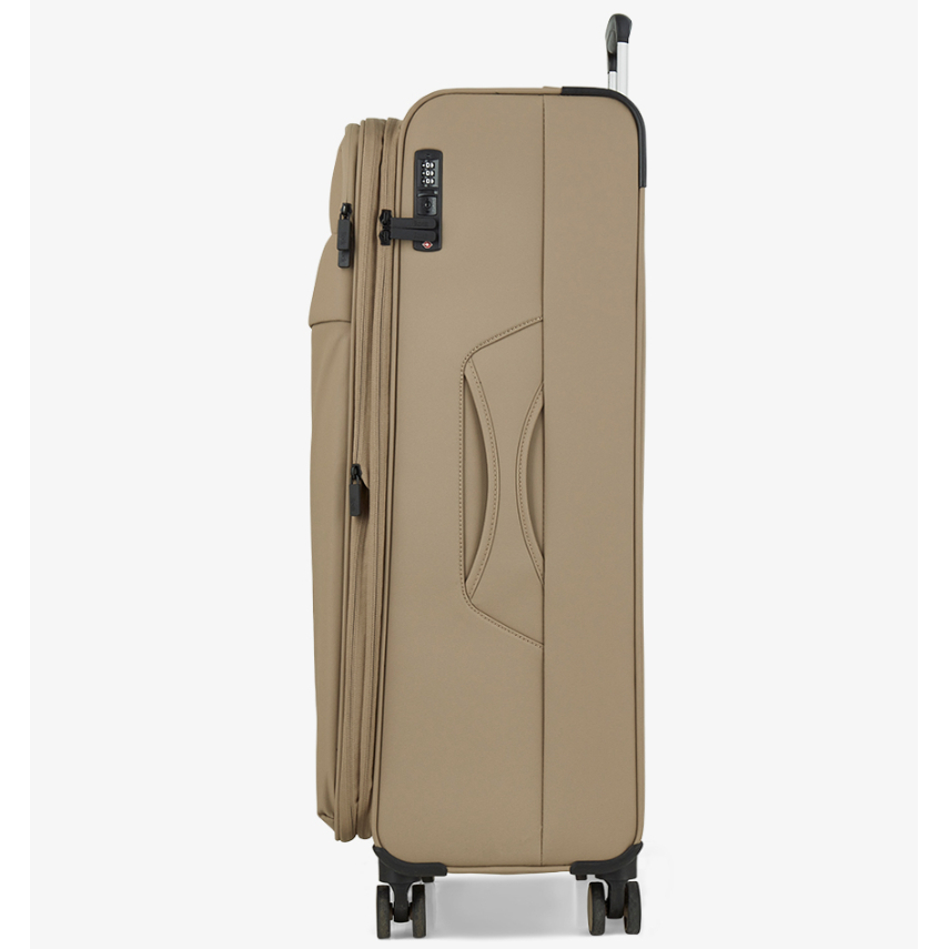 Kufry jsou uzavíratelné zipem, oba jezdce zipu se dají zapojit do TSA zapuštěného kódového zámku. Horní i boční madla jsou plastová. Kufry mají lehký výsuvný systém, kapsu na vnitřní straně víka a jistící popruhy. Celý pojízdný systém je umístěn uvnitř kufru pod textilní podšívkou, aby nedošlo k poškození systému při přepravě, a je opatřen čtyřmi dvojitými kolečky otočnými o 360°.