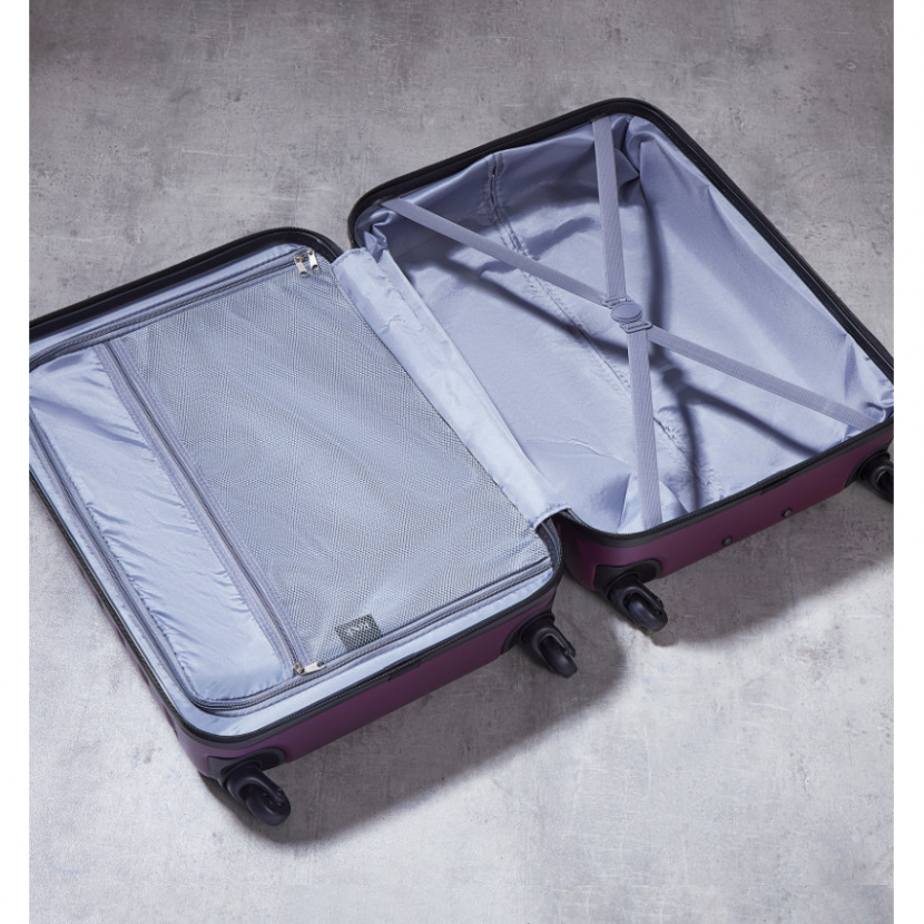 Kufr je uzavíratelný zipem. Oba jezdce zipu se dají zapojit do TSA zapuštěného kódového zámku. Horní i boční madlo je plastové. Celý pojízdný systém je umístěn uvnitř kufru pod textilní podšívkou, aby nedošlo k poškození systému při přepravě a je opatřen čtyřmi kolečky otočnými o 360°. Kufr má lehký výsuvný systém, vnitřní přepážku s kapsou a jistící popruhy.