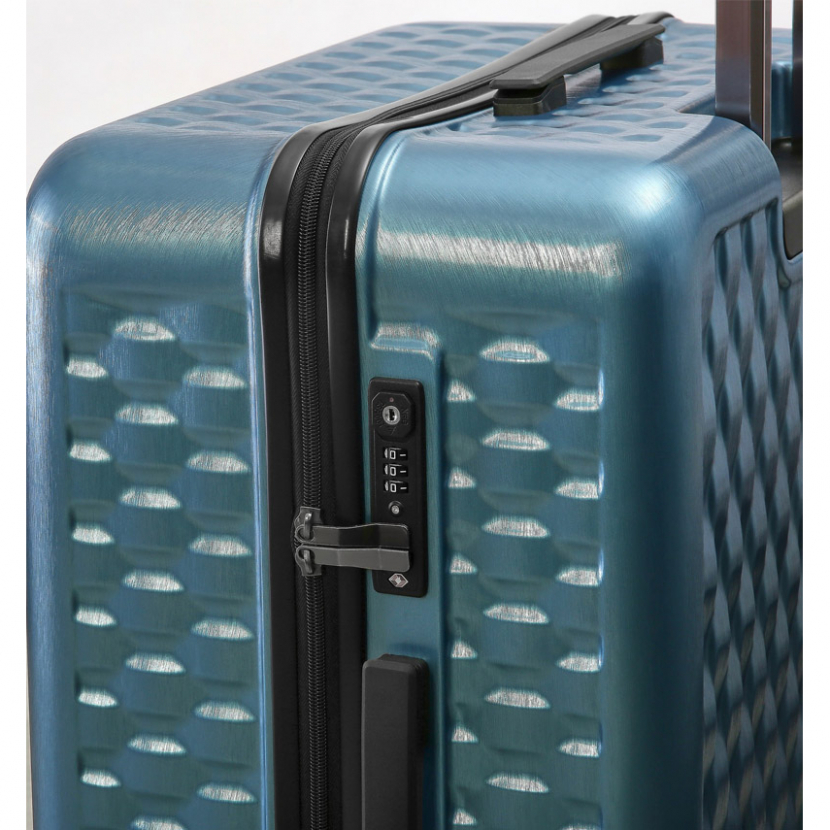 Kufr je uzavíratelný zipem. Oba jezdce zipu se dají zapojit do TSA zapuštěného kódového zámku. Horní i boční madlo je plastové. Celý pojízdný systém je umístěn uvnitř kufru pod textilní podšívkou, aby nedošlo k poškození systému při přepravě a je opatřen čtyřmi dvojitými kolečky otočnými o 360°. Kufr má lehký výsuvný systém, vnitřní přepážku s kapsou a jistící popruhy.