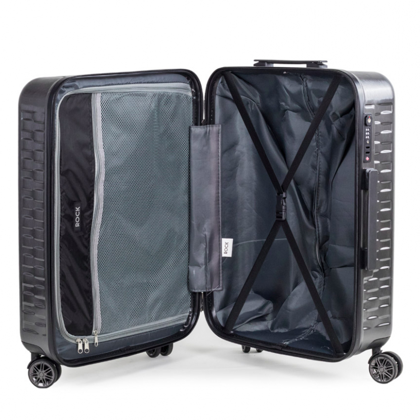 Kufr je uzavíratelný zipem. Oba jezdce zipu se dají zapojit do TSA zapuštěného kódového zámku. Horní i boční madlo je plastové. Celý pojízdný systém je umístěn uvnitř kufru pod textilní podšívkou, aby nedošlo k poškození systému při přepravě a je opatřen čtyřmi dvojitými kolečky otočnými o 360°. Kufr má lehký výsuvný systém, vnitřní přepážku s kapsou a jistící popruhy.