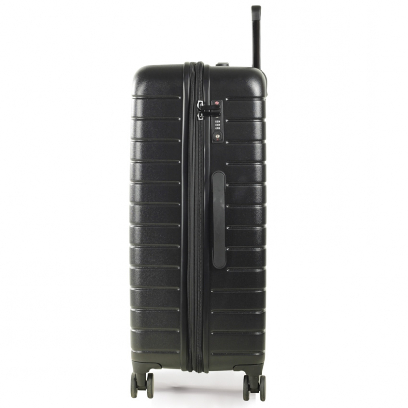 Kufr je uzavíratelný zipem. Oba jezdce zipu se dají zapojit do TSA zapuštěného kódového zámku. U kufru lze pomocí druhého zipu zvětšit vnitřní objem. Horní i boční madlo je plastové. Celý pojízdný systém je umístěn uvnitř kufru pod textilní podšívkou, aby nedošlo k poškození systému při přepravě a je opatřen čtyřmi dvojitými kolečky otočnými o 360°. Kufr má lehký výsuvný systém, vnitřní přepážku a jistící popruhy.