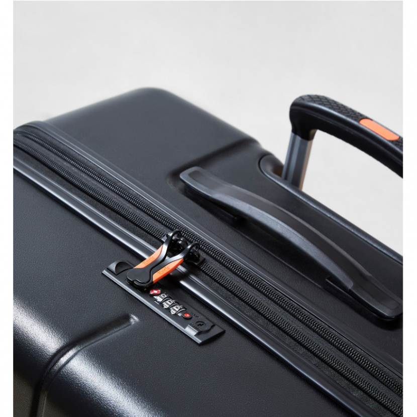 Kufr je uzavíratelný zipem. Použitý Anti-Theft Secure zip chrání obsah vašeho kufru proti násilnému nedovolenému vniknutí do kufru přes zip díky dvoum vrstvám zubů. Oba jezdce zipu se dají zapojit do TSA zapuštěného kódového zámku. U kufru lze pomocí druhého zipu zvětšit vnitřní objem. Horní i boční madlo je plastové.