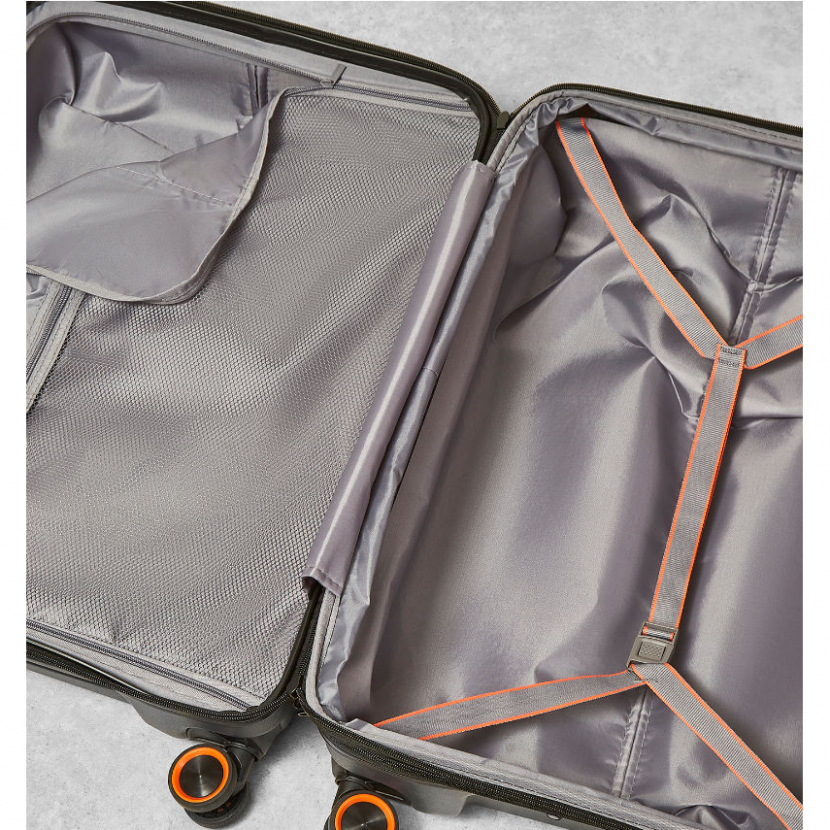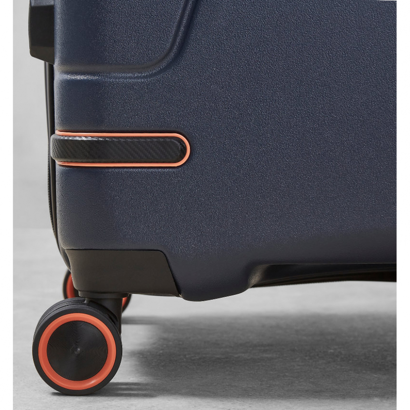Celý pojízdný systém je umístěn uvnitř kufru pod textilní podšívkou, aby nedošlo k poškození systému při přepravě a je opatřen čtyřmi dvojitými kolečky otočnými o 360°. Kufr má lehký výsuvný systém, vnitřní přepážku a jistící popruhy.