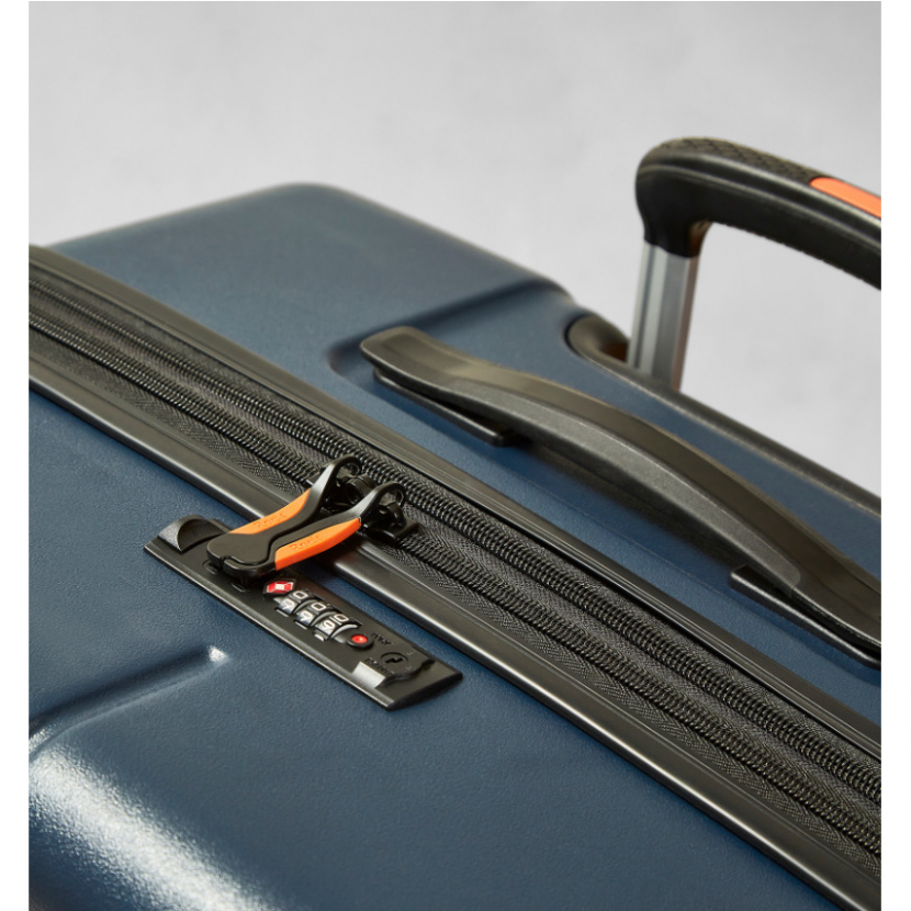 Kufr je uzavíratelný zipem. Použitý Anti-Theft Secure zip chrání obsah vašeho kufru proti násilnému nedovolenému vniknutí do kufru přes zip díky dvoum vrstvám zubů. Oba jezdce zipu se dají zapojit do TSA zapuštěného kódového zámku. U kufru lze pomocí druhého zipu zvětšit vnitřní objem. Horní i boční madlo je plastové.
