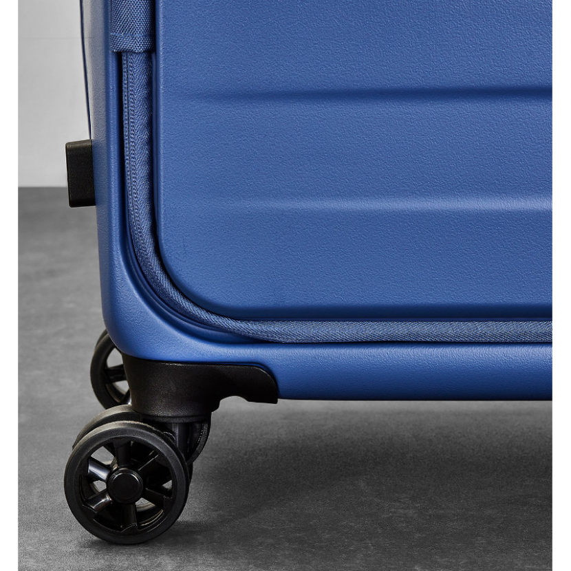 Kufr je uzavíratelný zipem, oba jezdce zipu se dají zapojit do TSA zapuštěného kódového zámku. Horní i boční madlo je plastové. Kufr má lehký výsuvný systém, kapsu na vnitřní straně víka a jistící popruhy. Celý pojízdný systém je umístěn uvnitř kufru pod textilní podšívkou, aby nedošlo k poškození systému při přepravě, a je opatřen čtyřmi dvojitými kolečky otočnými o 360°.