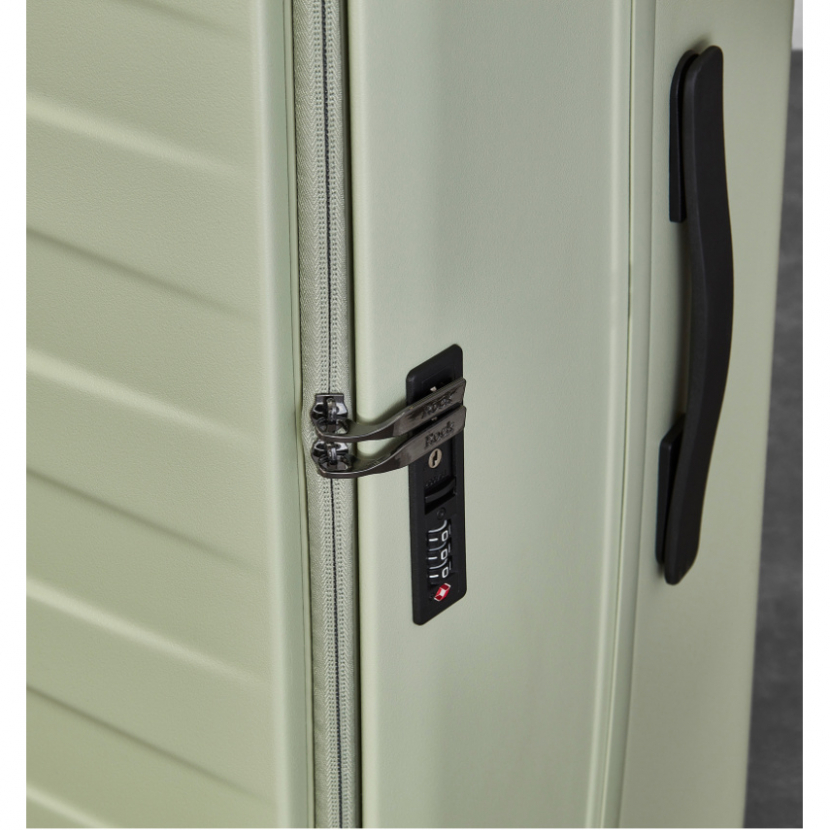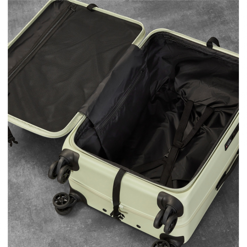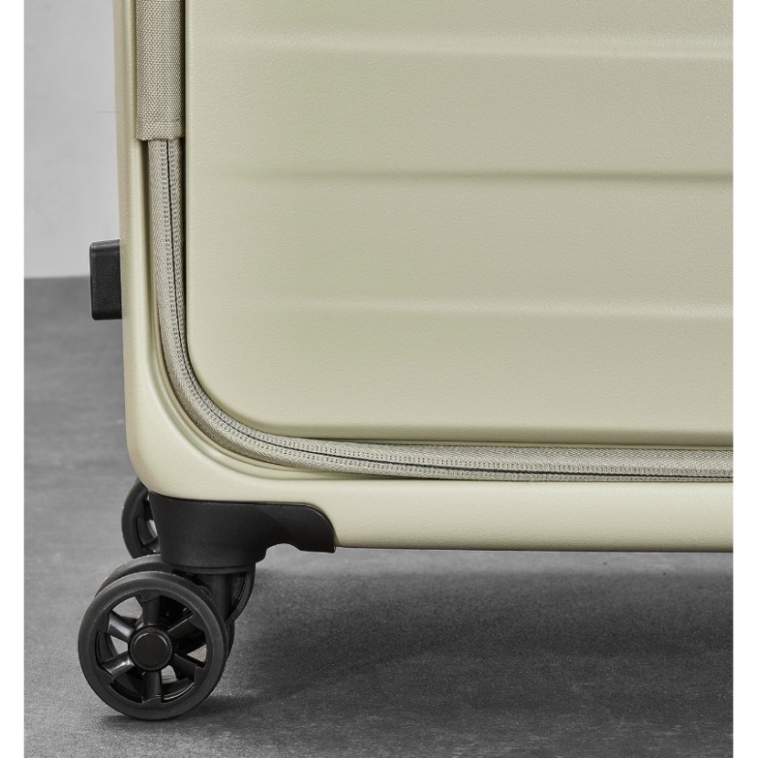 Kufr je uzavíratelný zipem, oba jezdce zipu se dají zapojit do TSA zapuštěného kódového zámku. Horní i boční madlo je plastové. Kufr má lehký výsuvný systém, kapsu na vnitřní straně víka a jistící popruhy. Celý pojízdný systém je umístěn uvnitř kufru pod textilní podšívkou, aby nedošlo k poškození systému při přepravě, a je opatřen čtyřmi dvojitými kolečky otočnými o 360°.