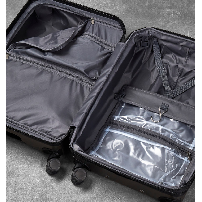 Kufr je uzavíratelný zipem. Oba jezdce zipu se dají zapojit do TSA zapuštěného kódového zámku. U kufru lze pomocí druhého zipu zvětšit vnitřní objem. Horní i boční madlo je plastové.