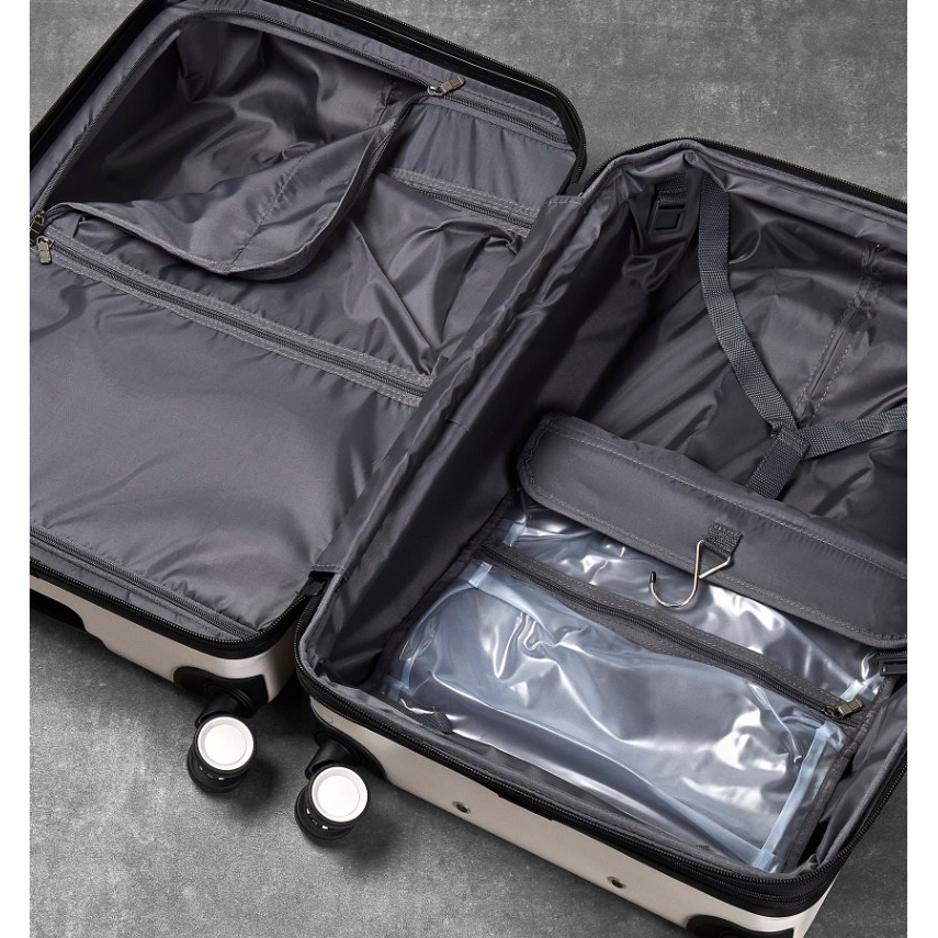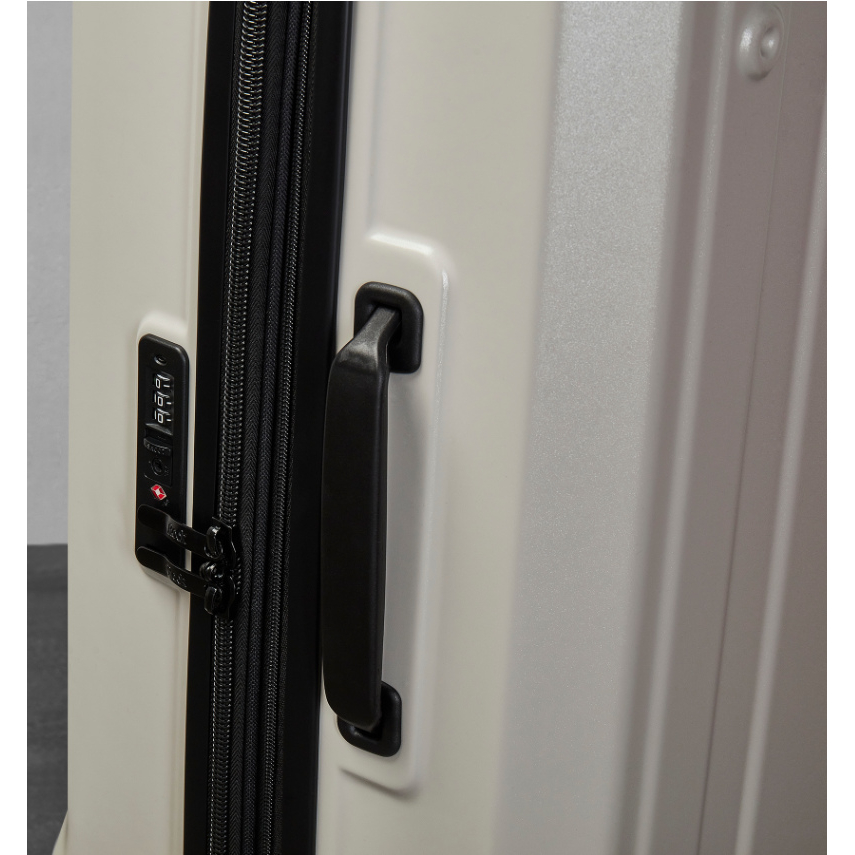 Kufr je uzavíratelný zipem. Oba jezdce zipu se dají zapojit do TSA zapuštěného kódového zámku. U kufru lze pomocí druhého zipu zvětšit vnitřní objem. Horní i boční madlo je plastové.