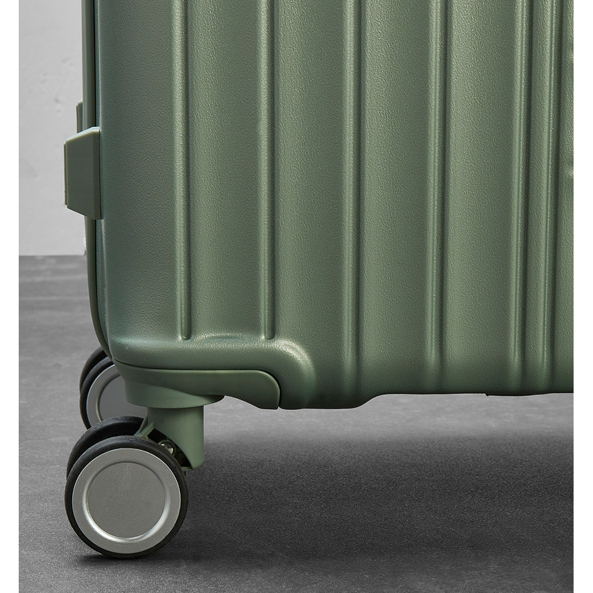 Kufr je uzavíratelný zipem. Oba jezdce zipu mají očko pro pohodlné nasazení kódového nebo klíčového zámku. Horní i boční madlo je plastové. Má lehký výsuvný systém, prostor na víku oddělený textilní přepážkou, vnitřní kapsu a jistící popruhy.