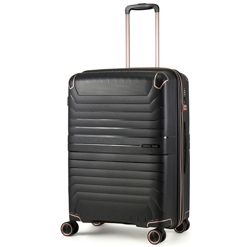 Cestovní kufr z kolekce ROCK Astrid je vyroben z polypropylenu, který je pevný a odolný proti nárazu.