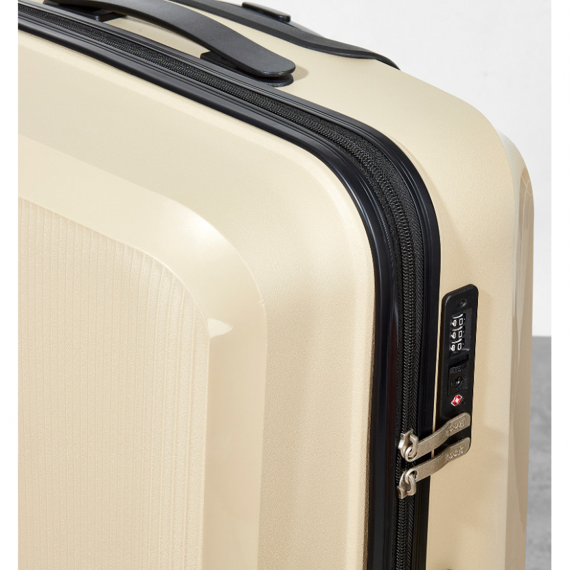 Kufr je uzavíratelný zipem, oba jezdce zipu se dají zapojit do TSA zapuštěného kódového zámku. Horní madlo je plastové. Kufr má lehký teleskopický výsuvný systém, vnitřní přepážku s kapsou a jistící popruhy.
