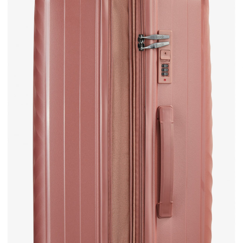 Cestovní kufr z kolekce ROCK Infinity. Kufr je uzavíratelný zipem. Oba jezdce zipu se dají zapojit do TSA zapuštěného kódového zámku. U kufru lze pomocí druhého zipu zvětšit vnitřní objem. Horní i boční madlo je plastové.
