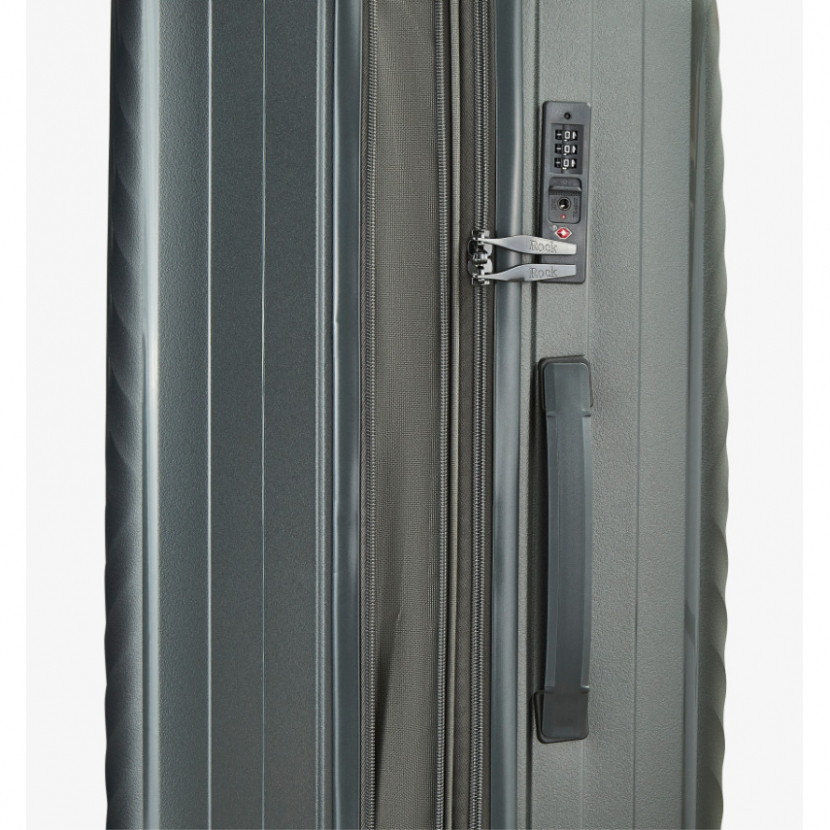 Cestovní kufr z kolekce ROCK Infinity. Kufr je uzavíratelný zipem. Oba jezdce zipu se dají zapojit do TSA zapuštěného kódového zámku. U kufru lze pomocí druhého zipu zvětšit vnitřní objem. Horní i boční madlo je plastové.