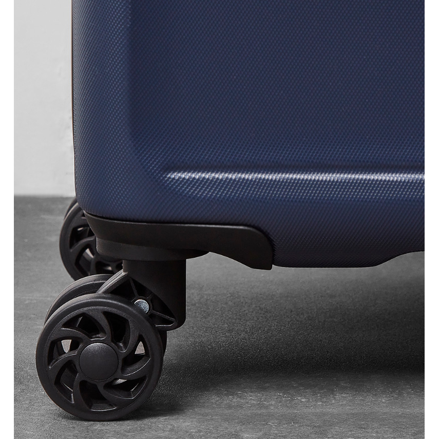 Kufr je uzavíratelný zipem. Oba jezdce zipu mají očko pro pohodlné nasazení kódového nebo klíčového zámku. Horní i boční madlo je plastové. Má lehký výsuvný systém, prostor na víku oddělený textilní přepážkou, vnitřní kapsu a jistící popruhy.
