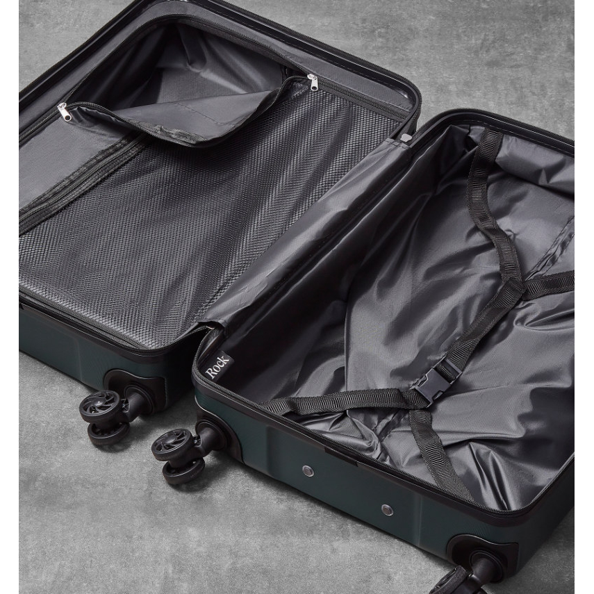 Kufr je uzavíratelný zipem. Oba jezdce zipu mají očko pro pohodlné nasazení kódového nebo klíčového zámku. Horní i boční madlo je plastové. Má lehký výsuvný systém, prostor na víku oddělený textilní přepážkou, vnitřní kapsu a jistící popruhy.