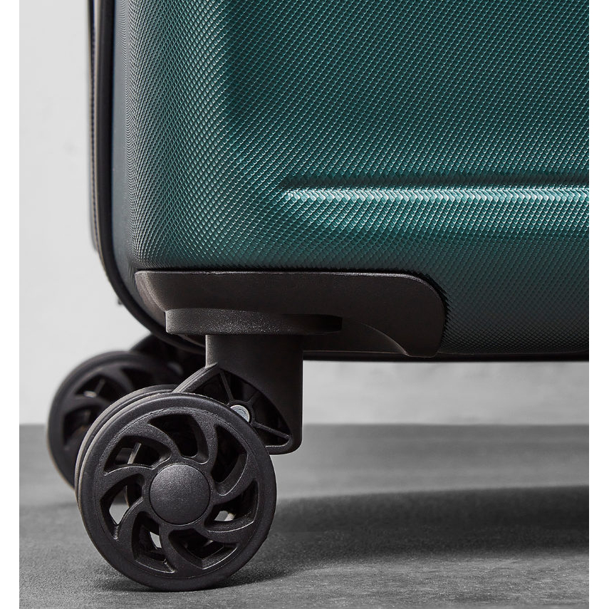 Celý pojízdný systém je umístěn uvnitř kufru pod textilní podšívkou, aby nedošlo k poškození systému při přepravě a je opatřen čtyřmi dvojitými kolečky otočnými o 360°.