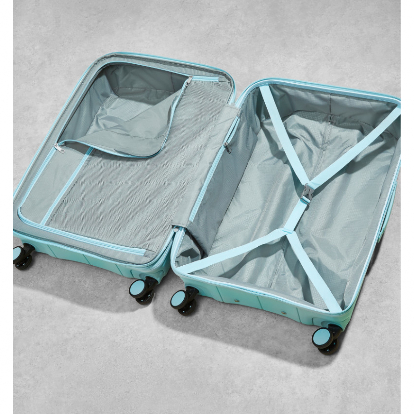 Kufr je uzavíratelný zipem, oba jezdce zipu se dají zapojit do TSA zapuštěného kódového zámku. U kufru lze pomocí druhého zipu zvětšit vnitřní objem. Horní i boční madlo je plastové. Má lehký výsuvný systém, prostor na víku oddělený textilní přepážkou, vnitřní kapsu a jistící popruhy.