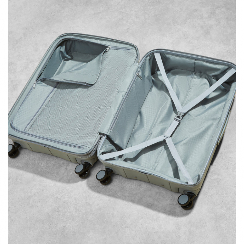 Kufr je uzavíratelný zipem, oba jezdce zipu se dají zapojit do TSA zapuštěného kódového zámku. U kufru lze pomocí druhého zipu zvětšit vnitřní objem. Horní i boční madlo je plastové. Má lehký teleskopický výsuvný systém, prostor na víku oddělený textilní přepážkou, vnitřní kapsu a jistící popruhy.
