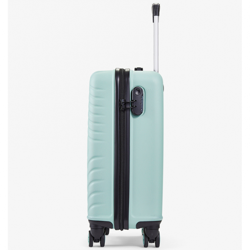 Kufr je uzavíratelný zipem. Oba jezdce zipu se dají zapojit do zapuštěného kódového zámku. Horní i boční madlo je plastové. Celý pojízdný systém je umístěn uvnitř kufru pod textilní podšívkou, aby nedošlo k poškození systému při přepravě a je opatřen čtyřmi kolečky otočnými o 360°. Kufr má lehký výsuvný systém, vnitřní přepážku a jistící popruhy.