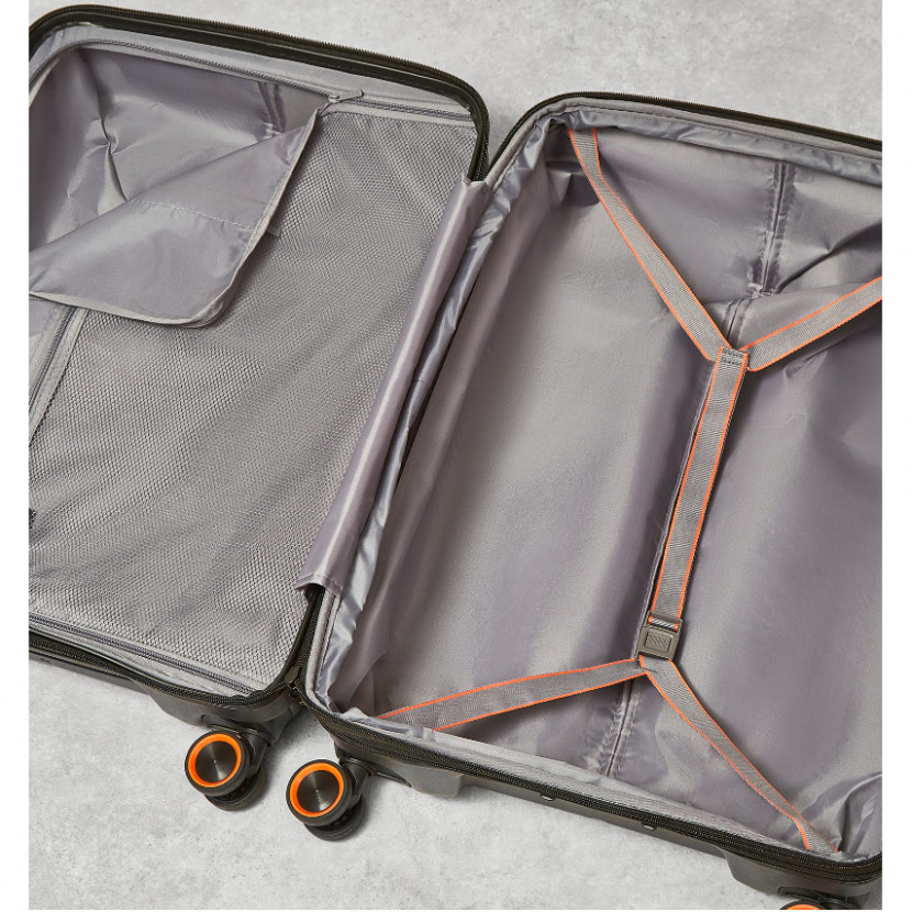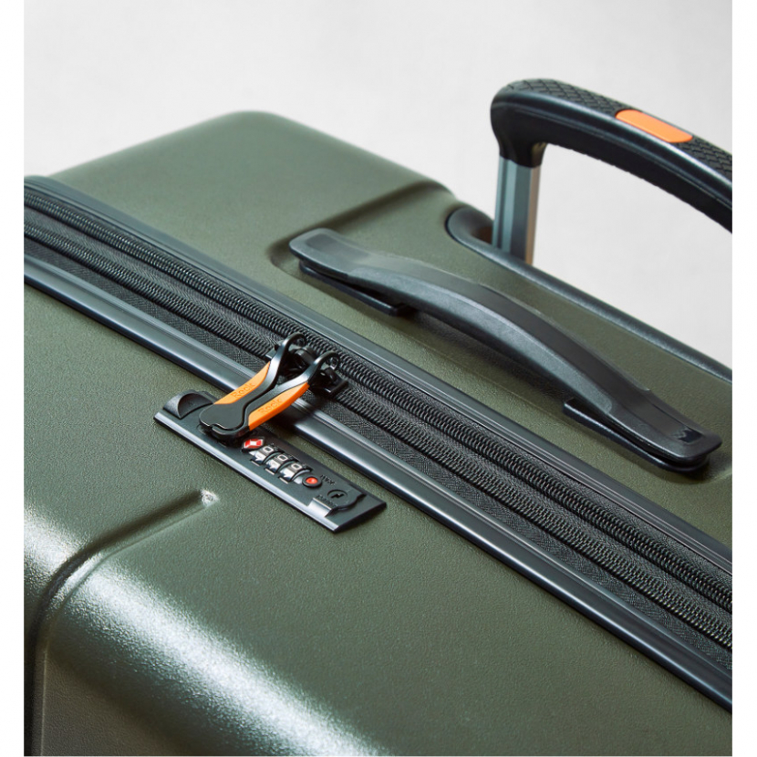 Kufr je uzavíratelný zipem. Použitý Anti-Theft Secure zip chrání obsah vašeho kufru proti násilnému nedovolenému vniknutí do kufru přes zip díky dvoum vrstvám zubů. Oba jezdce zipu se dají zapojit do TSA zapuštěného kódového zámku. U kufru lze pomocí druhého zipu zvětšit vnitřní objem. Horní madlo je plastové. Tato velikost kufru nemá boční madlo.