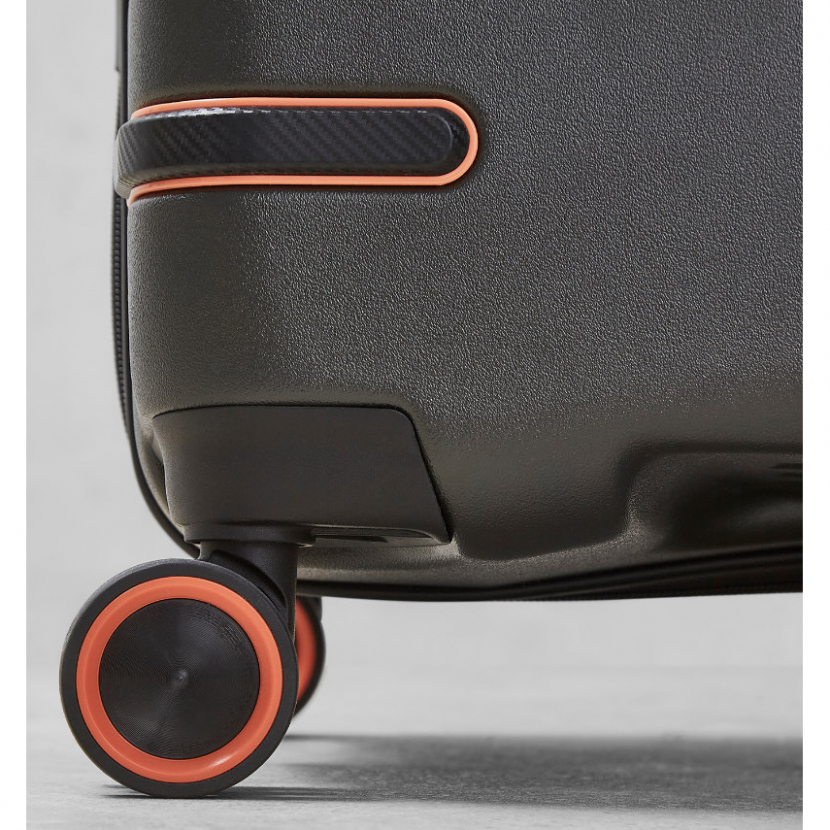 Celý pojízdný systém je umístěn uvnitř kufru pod textilní podšívkou, aby nedošlo k poškození systému při přepravě a je opatřen čtyřmi dvojitými kolečky otočnými o 360°. Kufr má lehký teleskopický výsuvný systém, vnitřní přepážku a jistící popruhy.