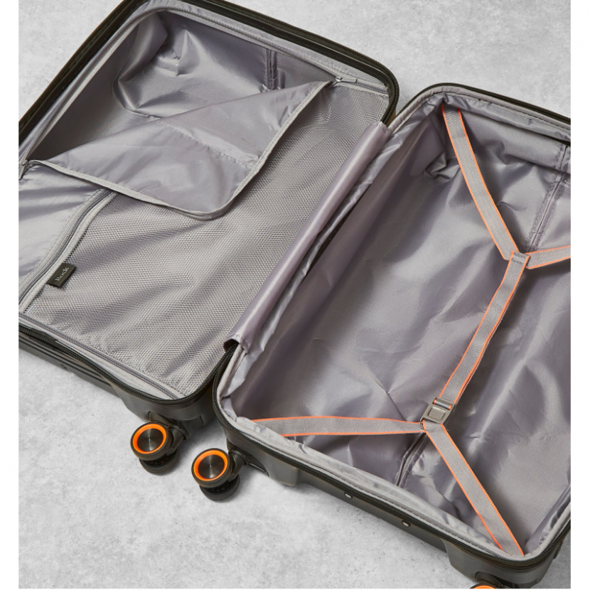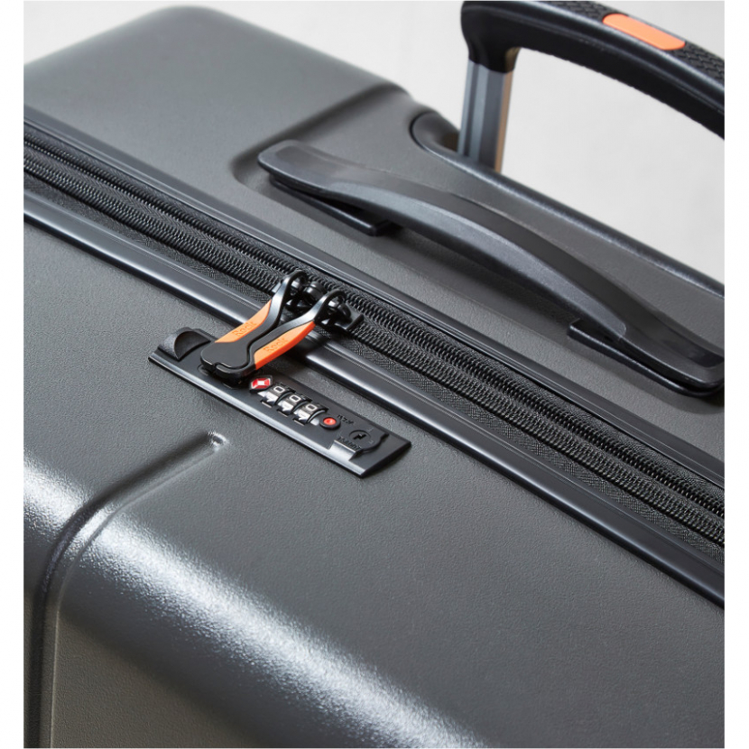 Kufr je uzavíratelný zipem. Použitý Anti-Theft Secure zip chrání obsah vašeho kufru proti násilnému nedovolenému vniknutí do kufru přes zip díky dvoum vrstvám zubů. Oba jezdce zipu se dají zapojit do TSA zapuštěného kódového zámku. U kufru lze pomocí druhého zipu zvětšit vnitřní objem. Horní madlo je plastové. Tato velikost kufru nemá boční madlo.