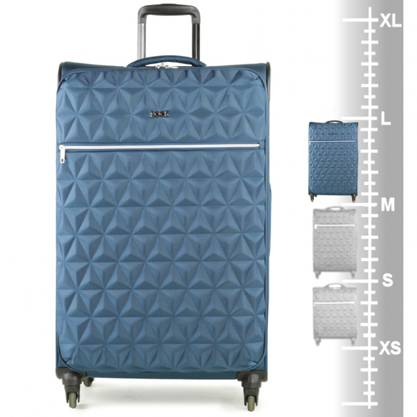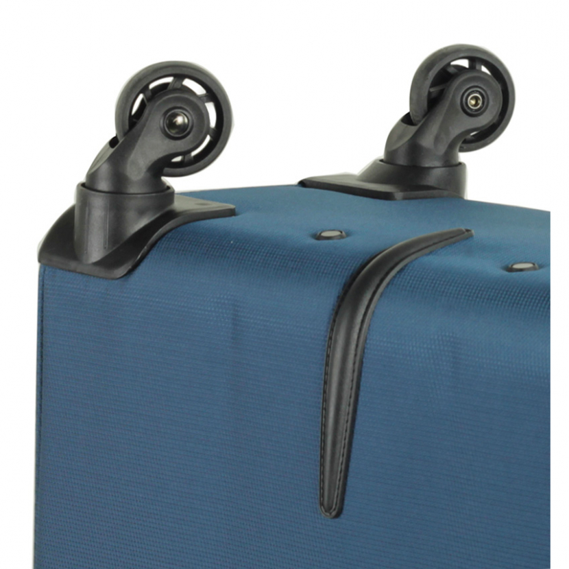 Kufr je uzavíratelný zipem. Oba jezdce zipu mají očka pro pohodlné nasazení kódového nebo klíčového zámku.V přední části je umístěna menší kapsa uzavíratelná zipem. Horní i boční madlo je polstrované v barvě kufru. Celý pojízdný systém je umístěn uvnitř kufru pod textilní podšívkou, aby nedošlo k poškození systému při přepravě, a je opatřen čtyřmi kolečky otočnými o 360°. Na vnitřní straně víka je kapsa na zip.