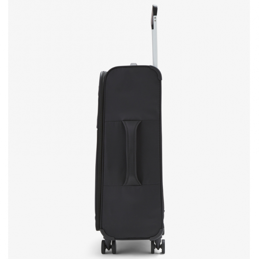 V přední části jsou umístěny dvě kapsy uzavíratelné zipem. Horní madlo je plastové a boční madlo je polstrované v barvě kufru. Celý pojízdný systém je umístěn uvnitř kufru pod textilní podšívkou, aby nedošlo k poškození systému při přepravě a je opatřen čtyřmi dvojitými kolečky otočnými o 360°. Kufr má lehký výsuvný systém, kapsu na vnitřní straně víka a jistící popruhy.