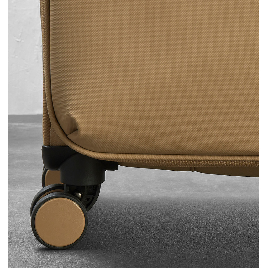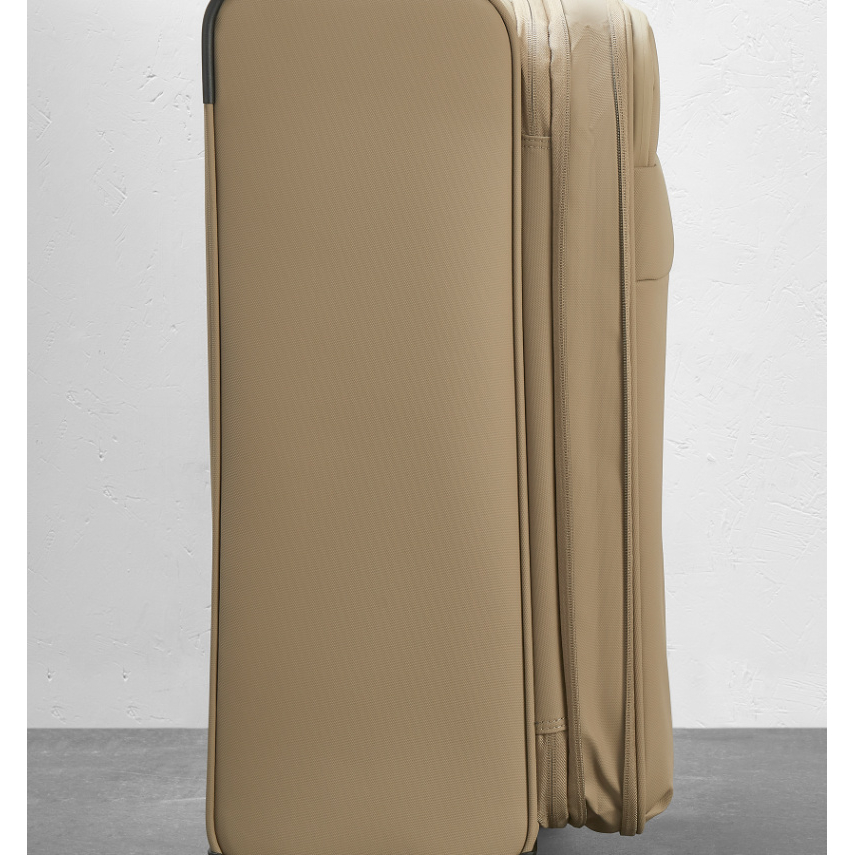 V přední části jsou umístěny dvě menší kapsy uzavíratelné zipem. Horní madlo je polstrované v barvě kufru. Tato velikost kufru nemá boční madlo. Celý pojízdný systém je umístěn uvnitř kufru pod textilní podšívkou, aby nedošlo k poškození systému při přepravě, a je opatřen čtyřmi dvojitými kolečky otočnými o 360°. Na vnitřní straně víka je kapsa na zip.