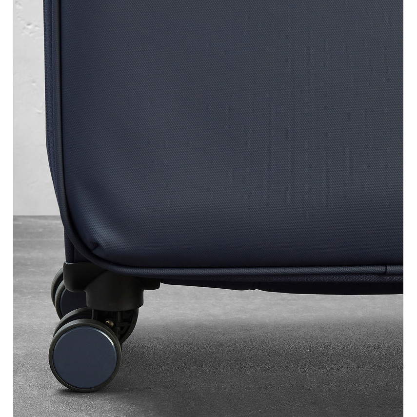 V přední části jsou umístěny dvě menší kapsy uzavíratelné zipem. Horní madlo je polstrované v barvě kufru. Tato velikost kufru nemá boční madlo. Celý pojízdný systém je umístěn uvnitř kufru pod textilní podšívkou, aby nedošlo k poškození systému při přepravě, a je opatřen čtyřmi dvojitými kolečky otočnými o 360°. Na vnitřní straně víka je kapsa na zip.