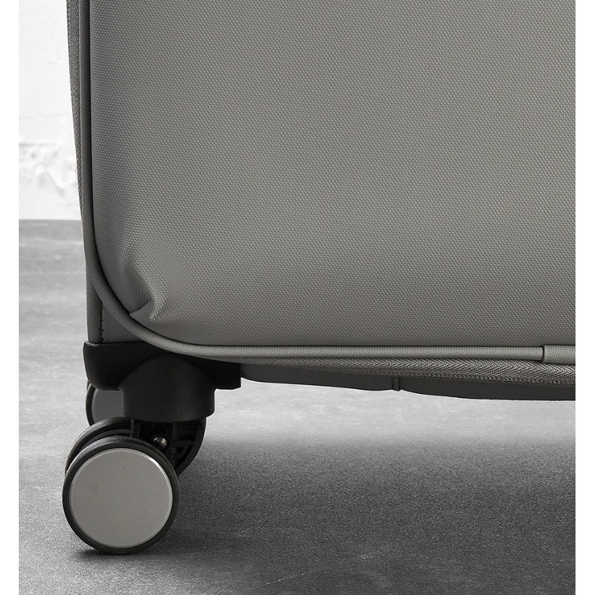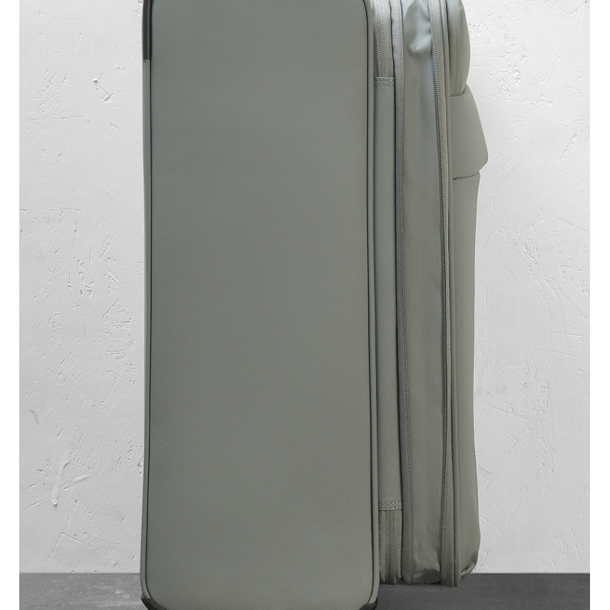 U kufru lze pomocí druhého zipu zvětšit vnitřní objem. V přední části jsou umístěny dvě menší kapsy uzavíratelné zipem. Horní i boční madlo je polstrované v barvě kufru. Celý pojízdný systém je umístěn uvnitř kufru pod textilní podšívkou, aby nedošlo k poškození systému při přepravě, a je opatřen čtyřmi dvojitými kolečky otočnými o 360°. Na vnitřní straně víka je kapsa na zip.