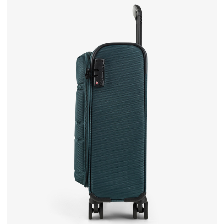Na přední části je jedna menší kapsa uzavíratelná zipem. Horní madlo je polstrované v barvě kufru. Tato velikost kufru nemá boční madlo. Celý pojízdný systém je umístěn uvnitř kufru pod textilní podšívkou, aby nedošlo k poškození systému při přepravě, a je opatřen čtyřmi dvojitými kolečky otočnými o 360°. Na vnitřní straně víka je kapsa na zip.