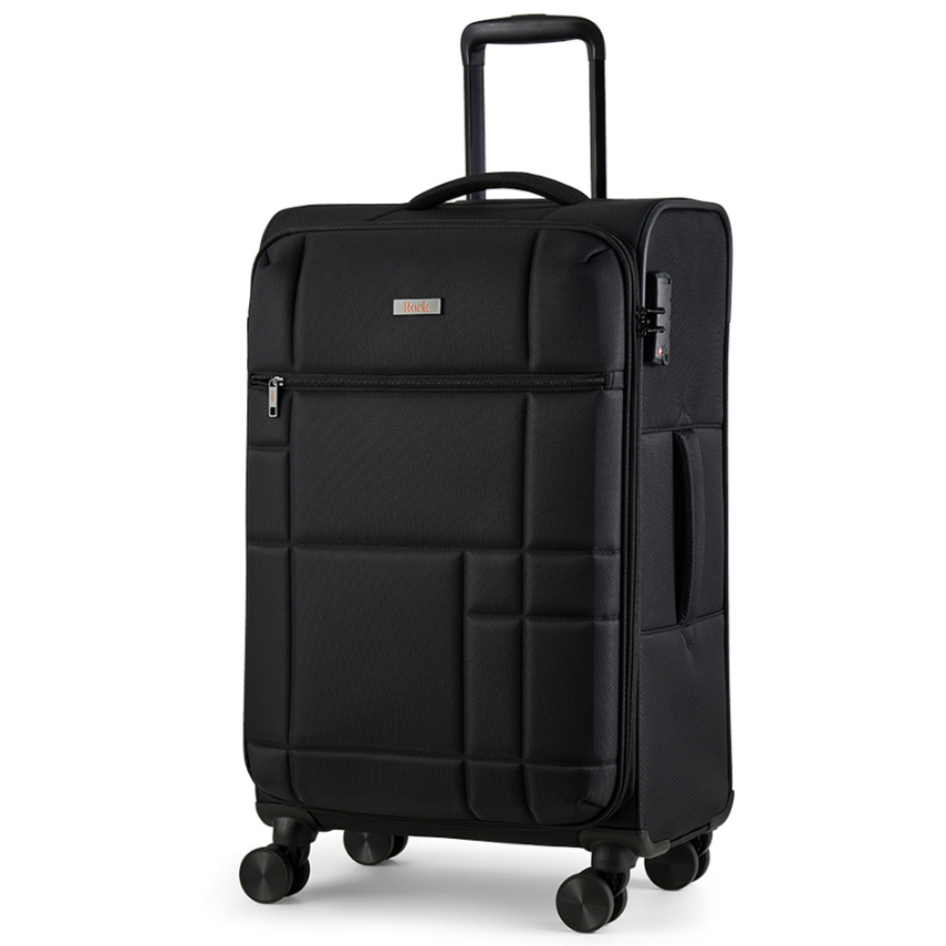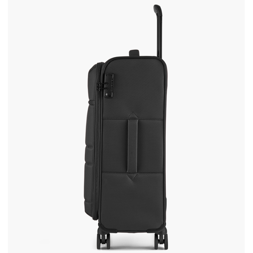 Na přední části je jedna menší kapsa uzavíratelná zipem. Horní i boční madlo je polstrované v barvě kufru. Celý pojízdný systém je umístěn uvnitř kufru pod textilní podšívkou, aby nedošlo k poškození systému při přepravě, a je opatřen čtyřmi dvojitými kolečky otočnými o 360°. Na vnitřní straně víka je kapsa na zip.