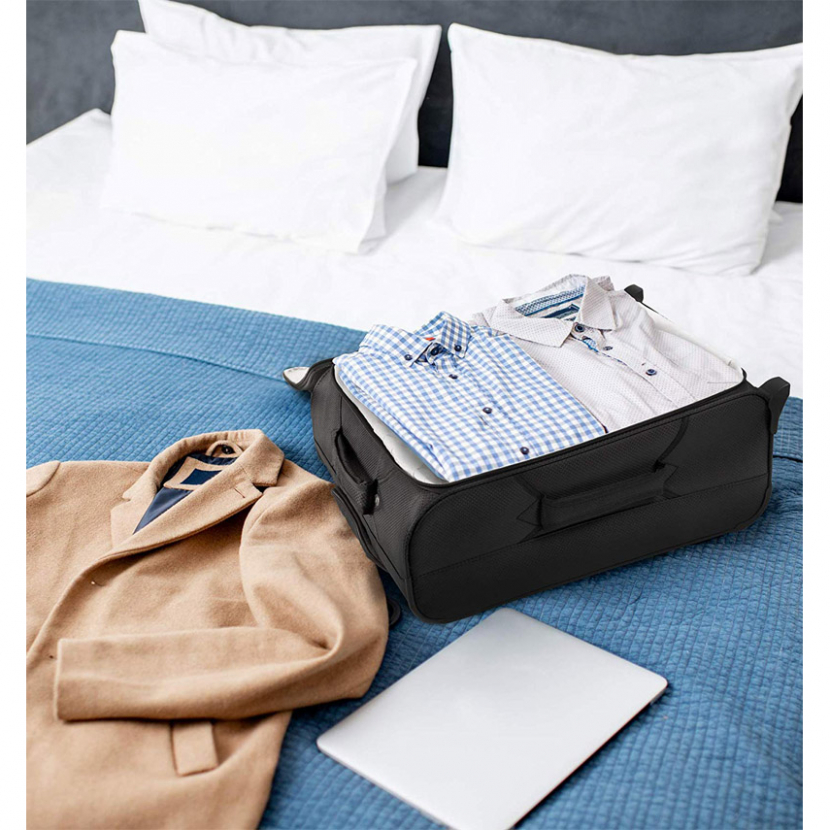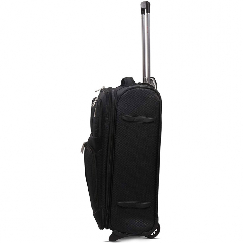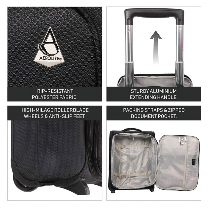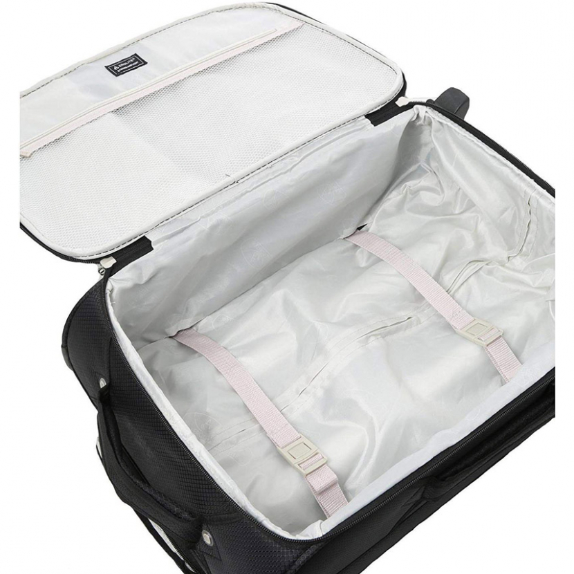 U kufru lze pomocí druhého zipu zvětšit vnitřní objem. V přední části jsou umístěny dvě kapsy uzavíratelné zipem. Na zadní straně je umístěn adresní štítek. Boční i horní madlo je polstrované v barvě kufru. Celý pojízdný systém je umístěn uvnitř kufru pod textilní podšívkou, aby nedošlo k poškození systému při přepravě, a je opatřen inline kolečky s ložisky. Na vnitřní straně víka je kapsa na zip velikosti víka kufru.