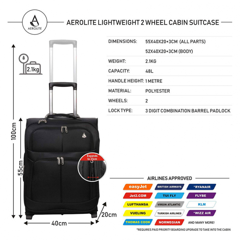 Tato velikost kufru je většinou leteckých společností akceptována jako kabinové zavazadlo.