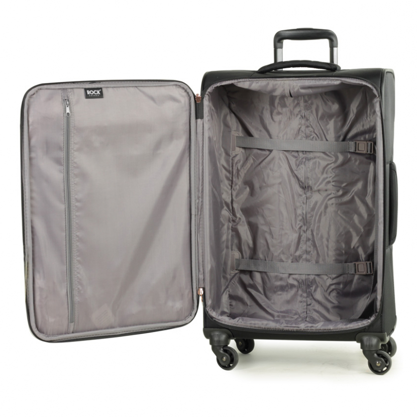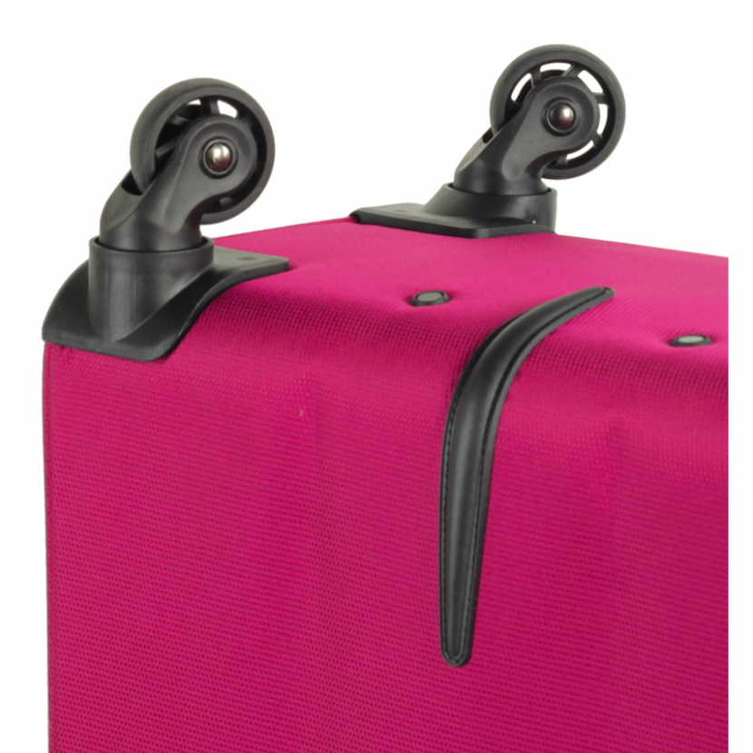 V přední části je umístěna menší kapsa uzavíratelná zipem. Horní i boční madlo je polstrované v barvě kufru. Celý pojízdný systém je umístěn uvnitř kufru pod textilní podšívkou, aby nedošlo k poškození systému při přepravě, a je opatřen čtyřmi kolečky otočnými o 360°. Na vnitřní straně víka je kapsa na zip.