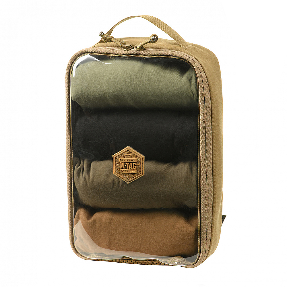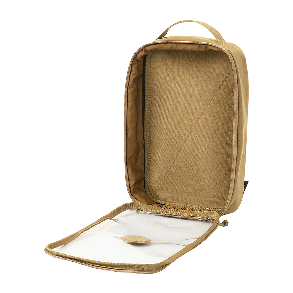 Pouzdro je vyrobené z kvalitního materiálu Cordura 500D, který je odolný proti opotřebení, perfektně drží tvar a nedeformuje se, když je mokrý. Přední stěna organizéru je vyrobena z průhledné PVC fólie, která pomáhá rychle identifikovat požadovaný předmět. Vnitřní stěna organizéru umožňuje připevnit modulární vložky na suchý zip. Na dně je speciální síťovina, která funguje jako odvodňovací očko a zajišťuje dobrou cirkulaci vzduchu. Zip je navíc vybaven dvěma reflexními šňůrkami. MIL-STD popruhová rukojeť je navržena pro pohodlné používání organizéru.