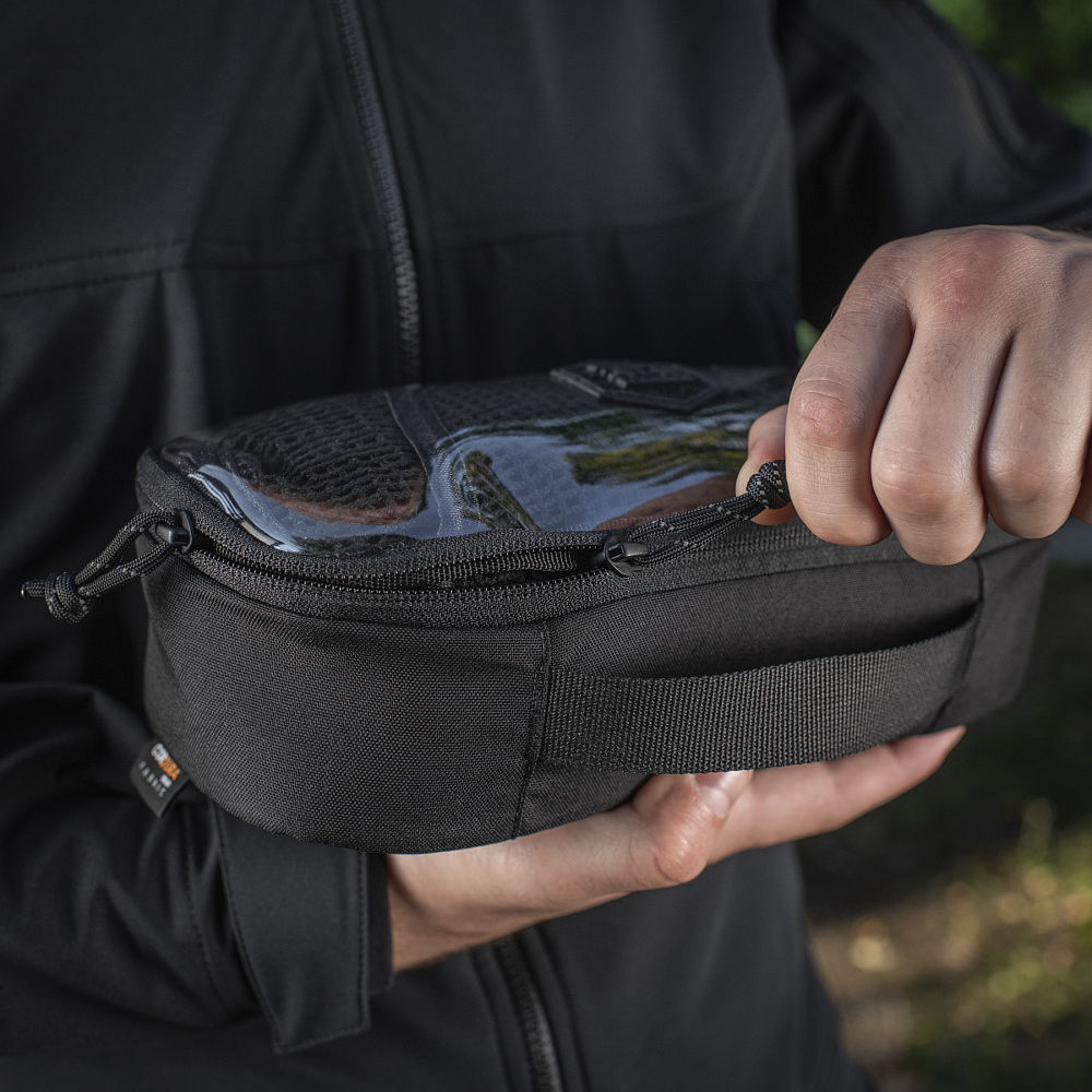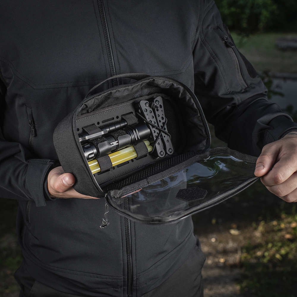 Pouzdro je vyrobené z kvalitního materiálu Cordura 500D, který je odolný proti opotřebení, perfektně drží tvar a nedeformuje se, když je mokrý. Přední stěna organizéru je vyrobena z průhledné PVC fólie, která pomáhá rychle identifikovat požadovaný předmět. Vnitřní stěna organizéru umožňuje připevnit modulární vložky na suchý zip. Na dně je speciální síťovina, která funguje jako odvodňovací očko a zajišťuje dobrou cirkulaci vzduchu. Zip je navíc vybaven dvěma reflexními šňůrkami. MIL-STD popruhová rukojeť je navržena pro pohodlné používání organizéru.