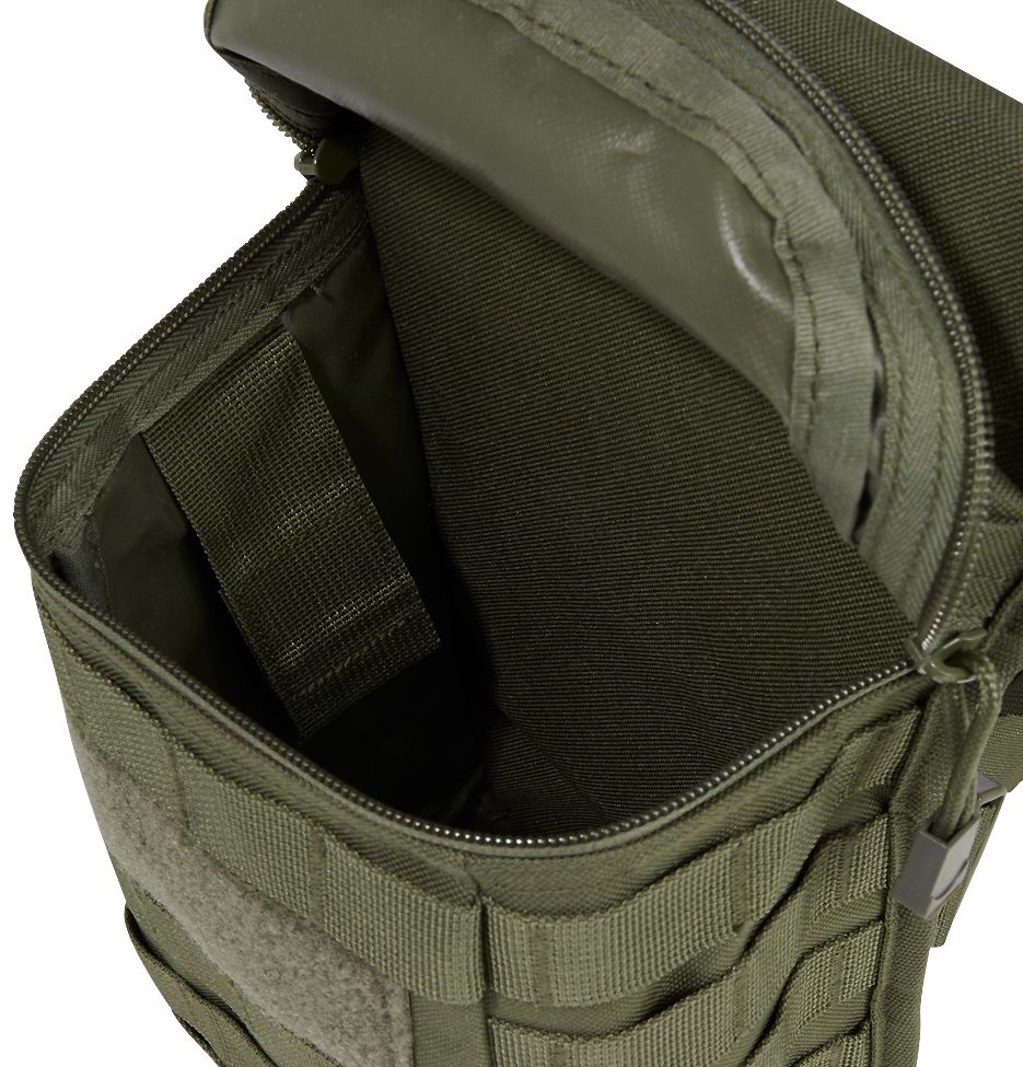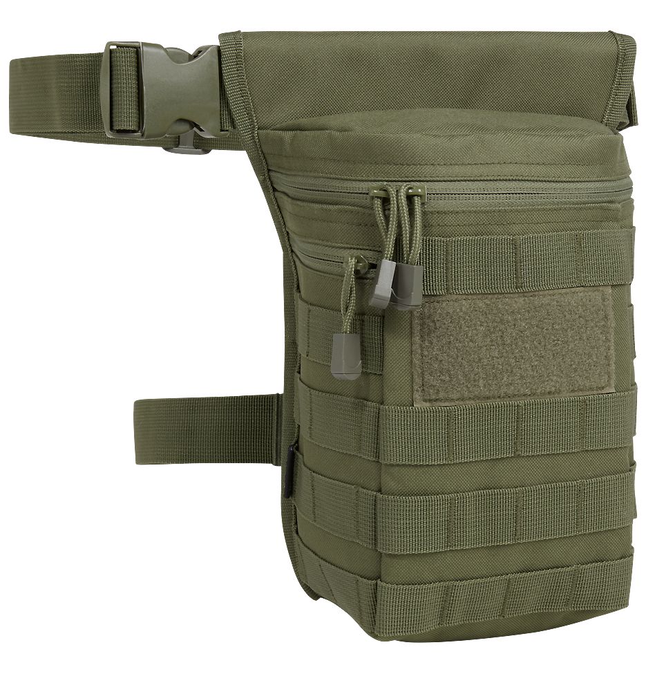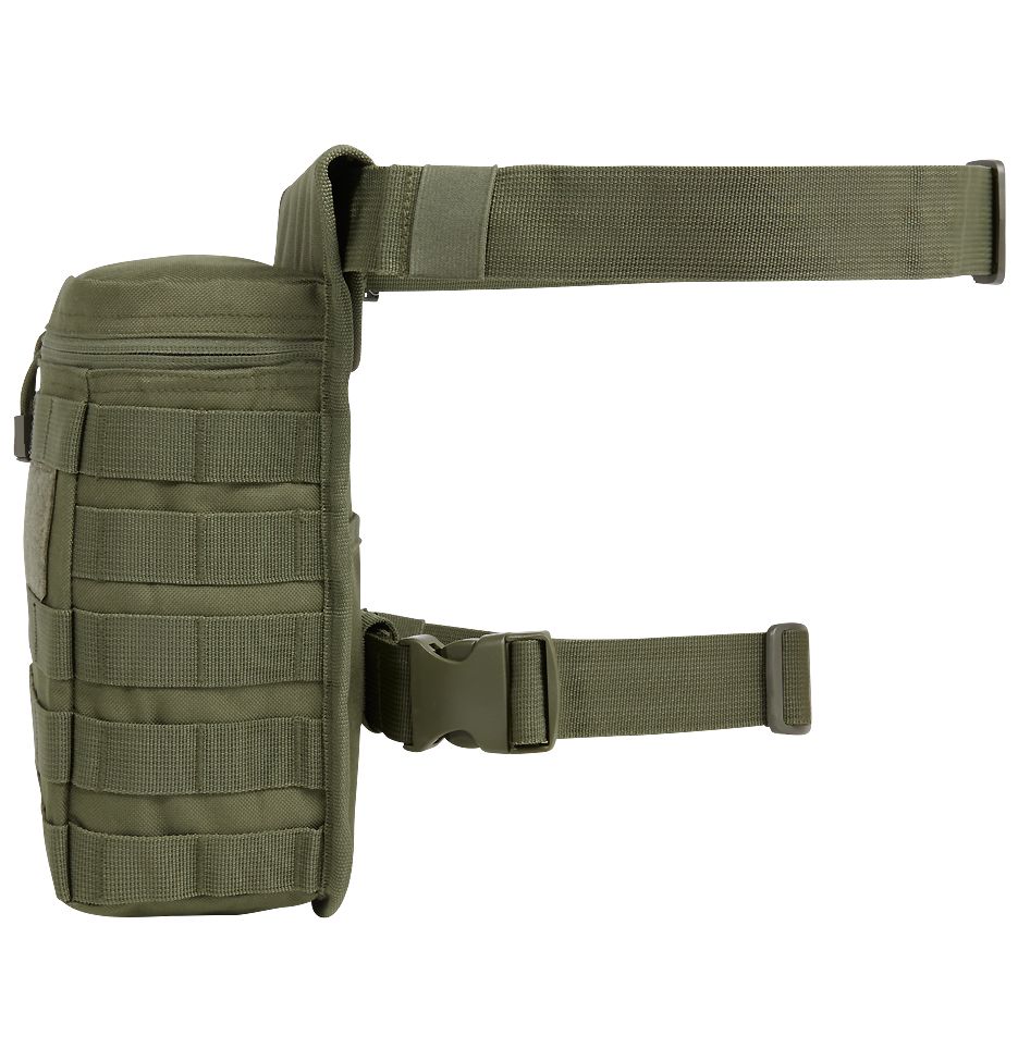 Připíná se popruhem kolem pasu (max 135 cm) a lze také druhým (stehenním popruhem) o délce max 80 cm. Na velké kapse je velcro panel o rozměrech 10 x 4 cm pro nášivku.