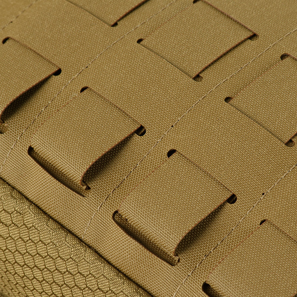 Připevňuje se k výstroji pomocí rozhraní MOLLE vyrobeného z materiálu Cordura Squadron s technologií Laser Cut. Toto pouzdro lze připevnit buď na pás pro rychlý přístup, na břišní plát, nebo jako další pouzdro pro útočný panel na nosiči plátů. Přední suchý zip umožňuje připevnit identifikační průkazy nebo vaše oblíbené nášivky. Uprostřed pouzdra je stylový šestiúhelník s logem společnosti.