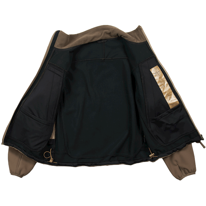 Originální podvlékací softshellová zateplovací bunda pod blůzy ECWCS 2010, se zeleným a béžovým potiskem.