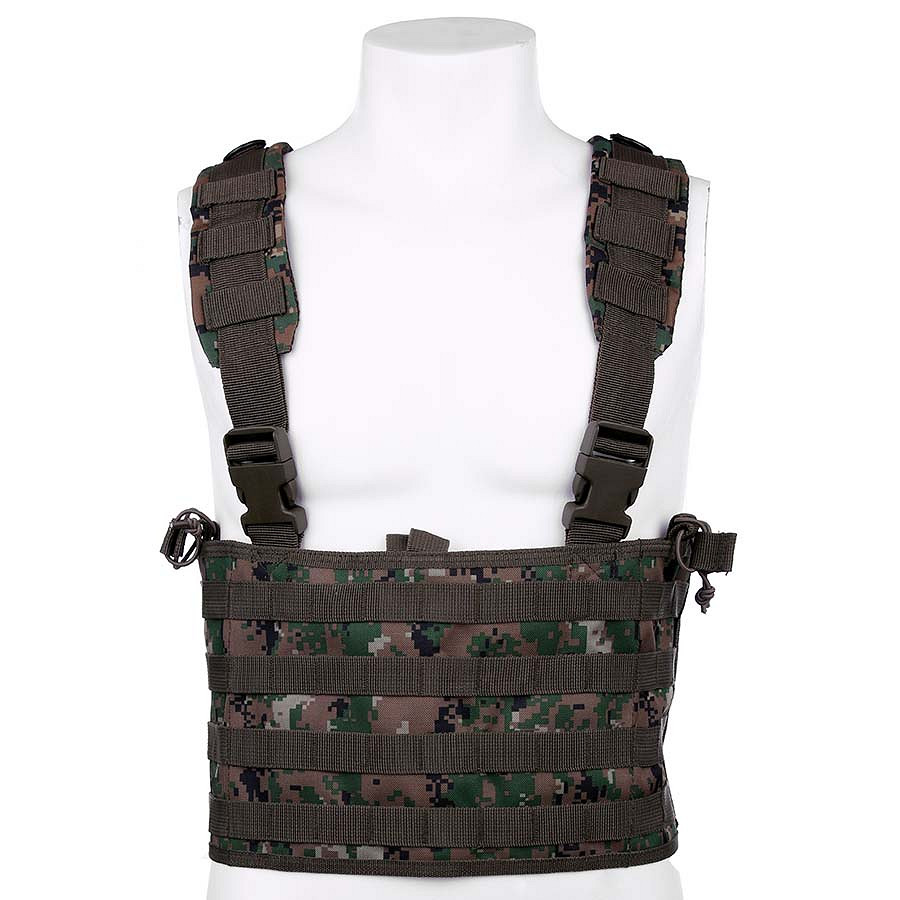 Hrudní nosič Recon je lehká a funkční výstroj pro outdoorové nebo taktické mise. Je vybavený systémem Molle na přední straně a ramenních popruzích a nabízí maximální modularitu pro připevnění pouzder a příslušenství.